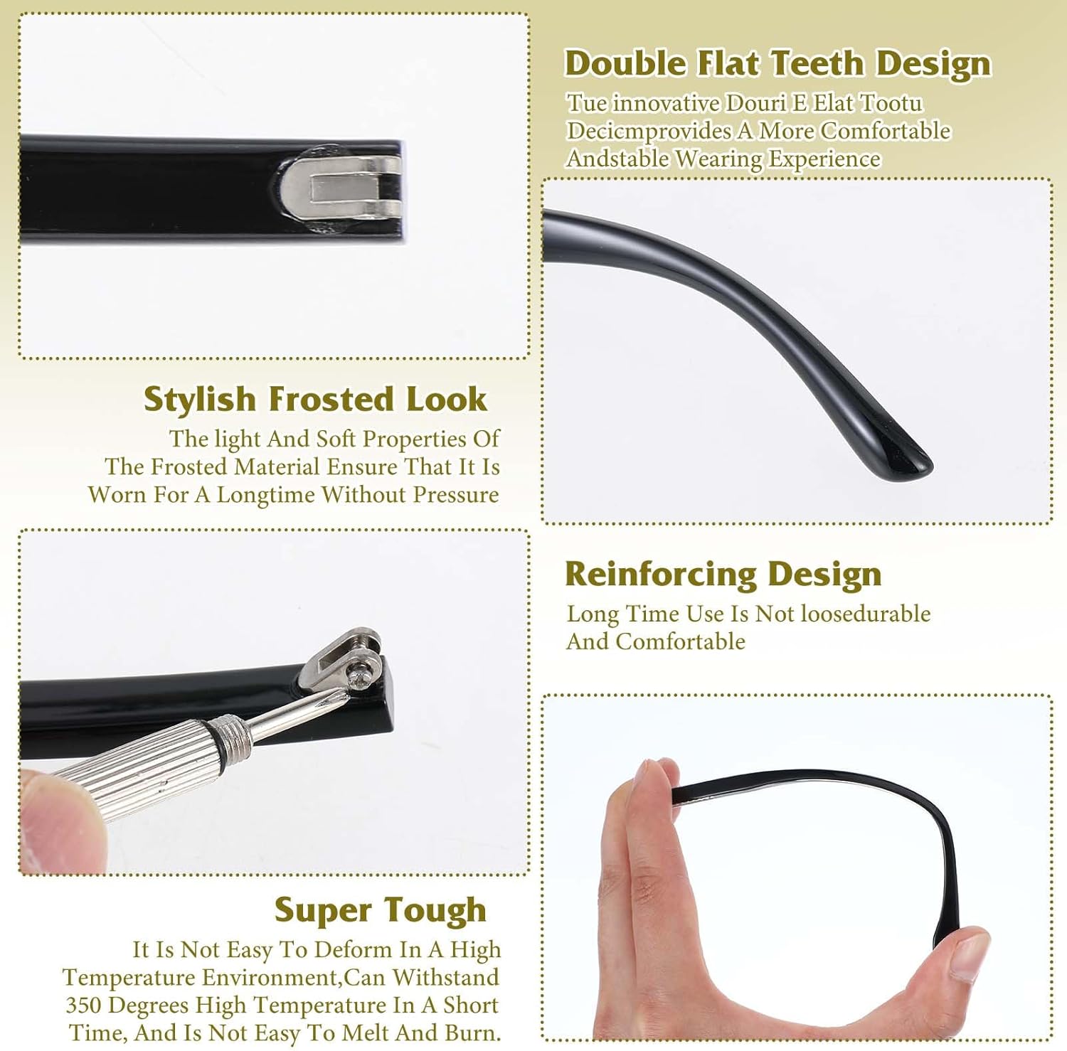 【High-quality Materials】These glasses’ arm replacements are made of TR-90 plastic, and eyeglass arm replacement is lightweight, durable, and flexible. The material ensures a long-lasting and comfortable wearing experience, and the eyeglass repairs are excellent for daily use.