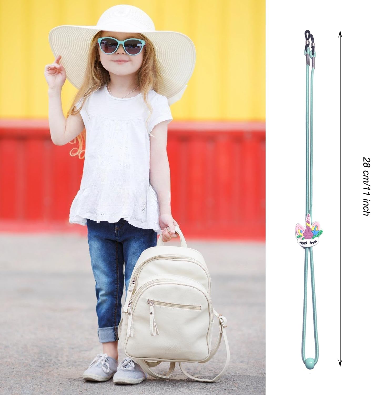 【Adjustable Buckle & Anti-skid Metallic Retainer】 Metallic loops at each ends of the straps could be slipped on and off simply to scure the strap with glasses firmly. The lovable and djustable cartoon buckle can match cords onto the youngsters’ glasses with ease or tighten up with a easy pull.