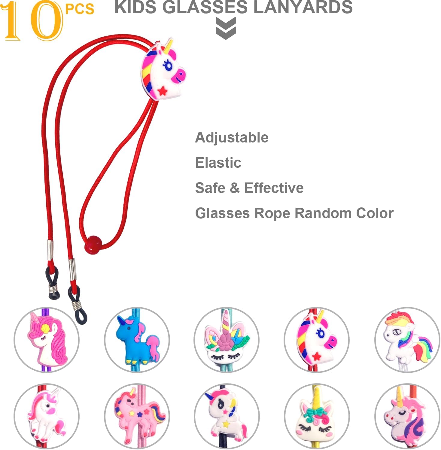 10 PCS kids glasses strap adjustable Anti-Skid lanyards cord for girls prescription glasses sunglass with cute cartoon buckle unicorn theme