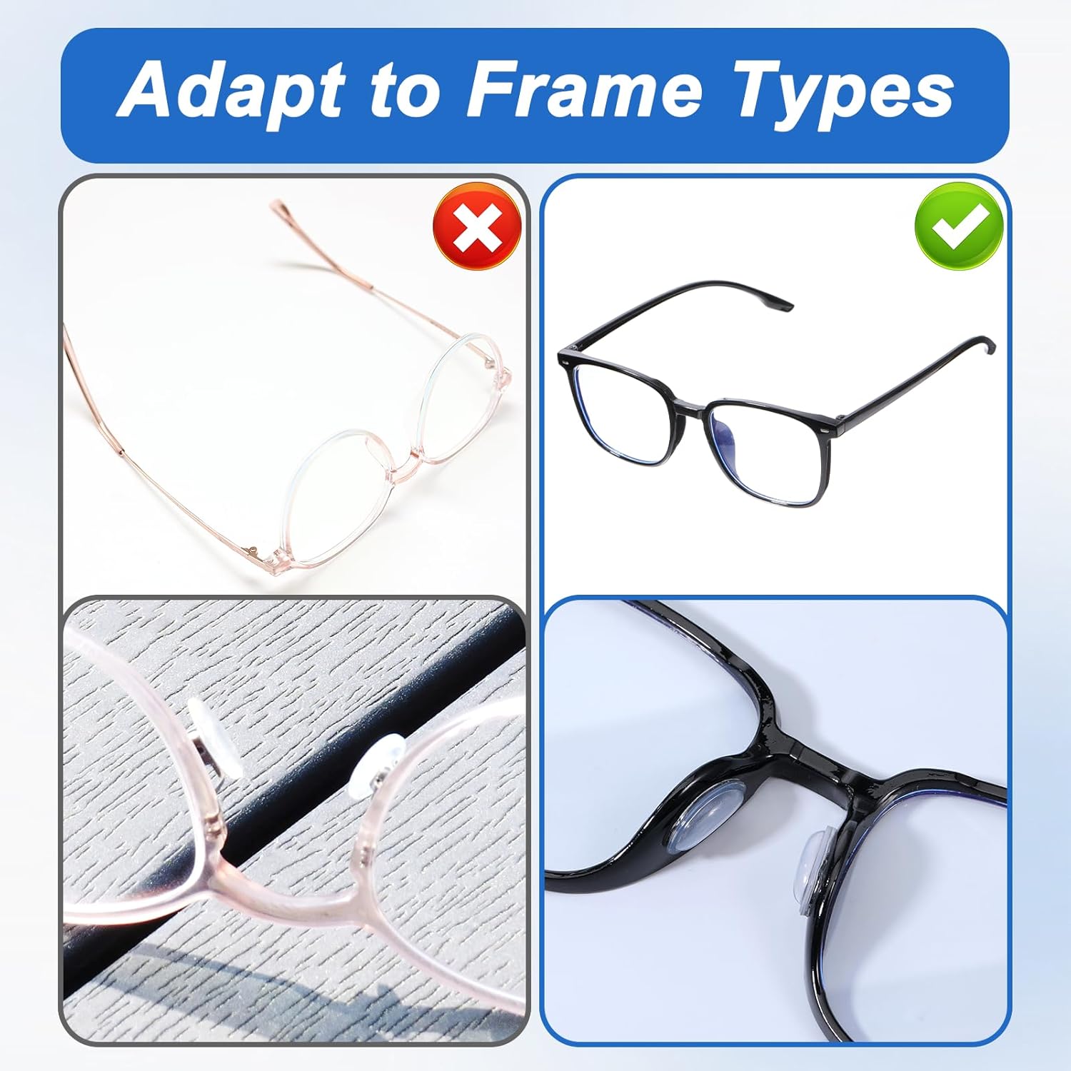 【Silicone Materials】Our nostril pads for glasses characteristic an air chamber design and are 3.5mm thick, offering optimum body hole and lowering strain factors throughout prolonged put on. The gentle silicone materials gives all-day consolation with out irritation or marking.