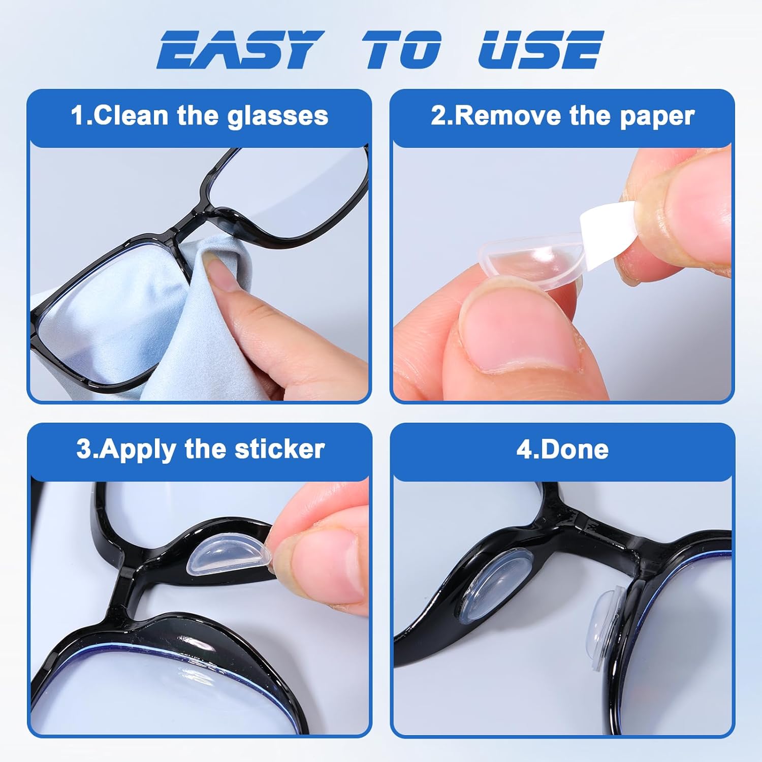 【Simple Set up】These eyeglass nostril pads require no instruments for set up—merely clear the attachment space, peel the protecting movie, and press firmly for 30 seconds. The user-friendly software course of makes substitute accessible to everybody.