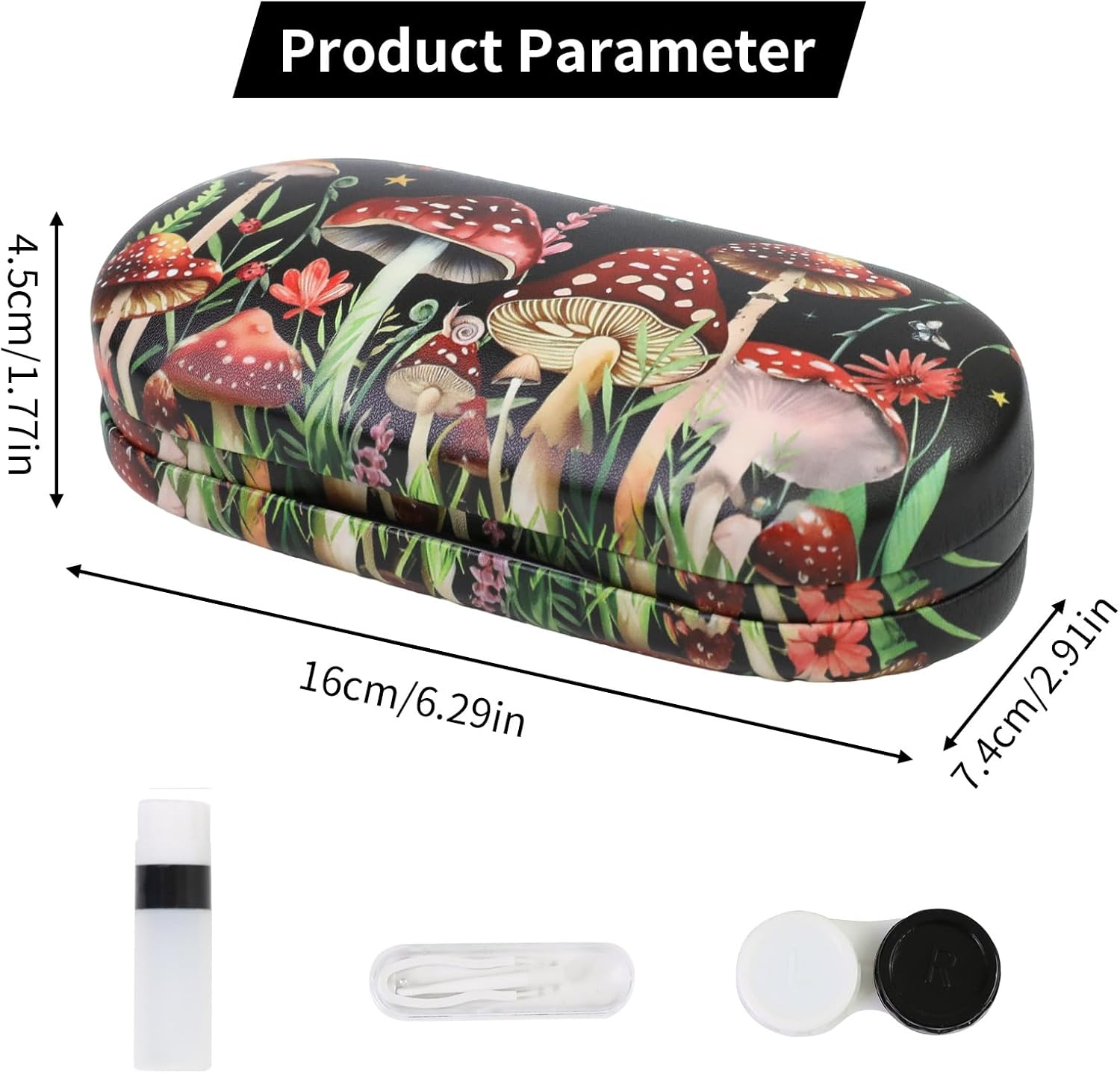 2 in 1 Contact Lens Case and Eyeglasses Case for Women Men Kids, Double Sided Hard Shell Portable Glasses Travel Holder with Built-in Mirror, Contact Lens Box Storage Kit (Black Mushroom)