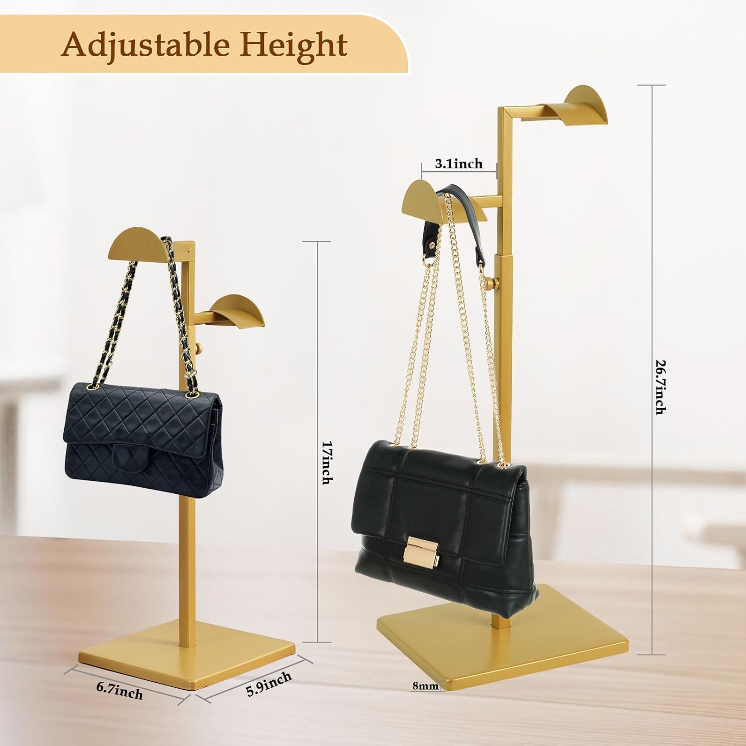 【Adjustable Top Purse Stand for Show】The high-strength steel pole ensures minimal wobbling. Modify the peak easily from 17 to 26.7 inches and lock it securely in place. It offers secure help for every thing from brief clutches to lengthy shoulder baggage, sustaining their good form.