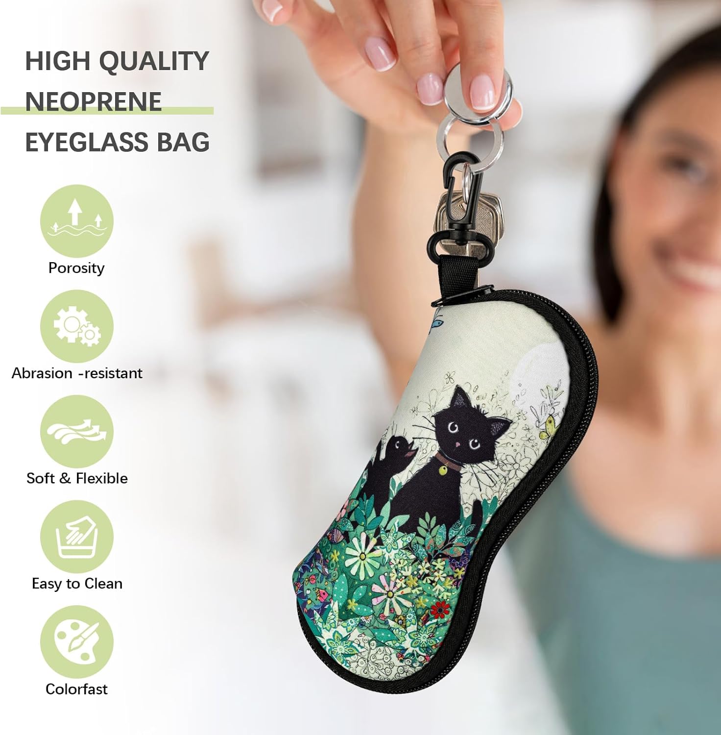 2 Pack Sunglasses Case, Neoprene Zipper Eyeglass Case, Soft Glass Travel Pouch with Clip for Women Men