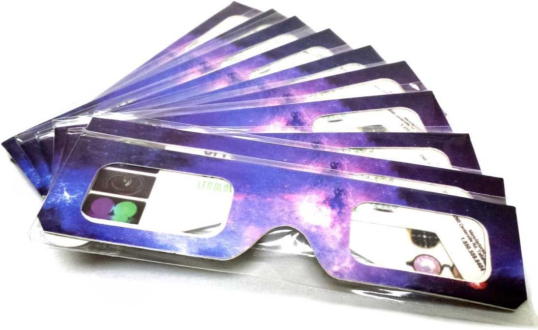 20 Pack Paper Cardboard Diffraction Glasses | 3D Rainbow Prism Galaxy Spiral Lens Effect | Perfect for Fireworks, Sunsets, Clubs, Concerts, Music Festivals EDM Rave Party