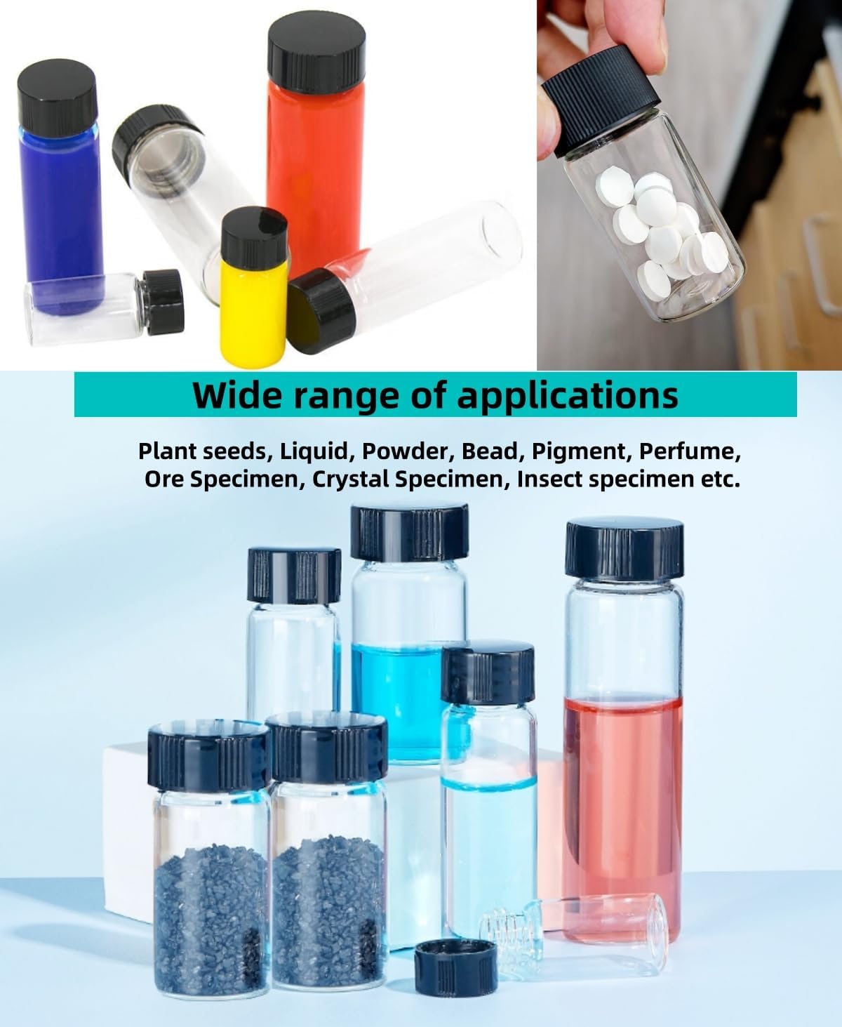 【Leak Proof】: Glass vials with screw caps with leak-proof caps, which mixed with the threaded spout, higher prevents the liquid from leaking or evaporating.