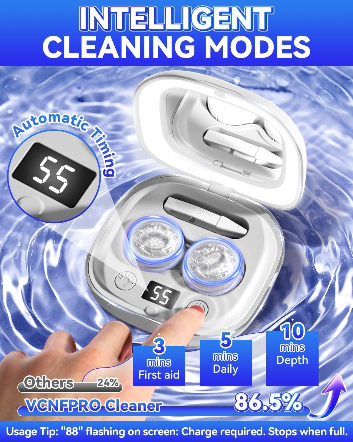 【Clever Chip & 3 Good Modes】With an clever chip, it gives 3 modes: 3 minutes for first help, 5 minutes for each day use, and 10 minutes for deep cleansing, 60s cycle countdown till full cleansing. This boosts cleansing effectivity by 200% for a simpler expertise. When “88” flashing on display screen: Cost required. Stops when full.