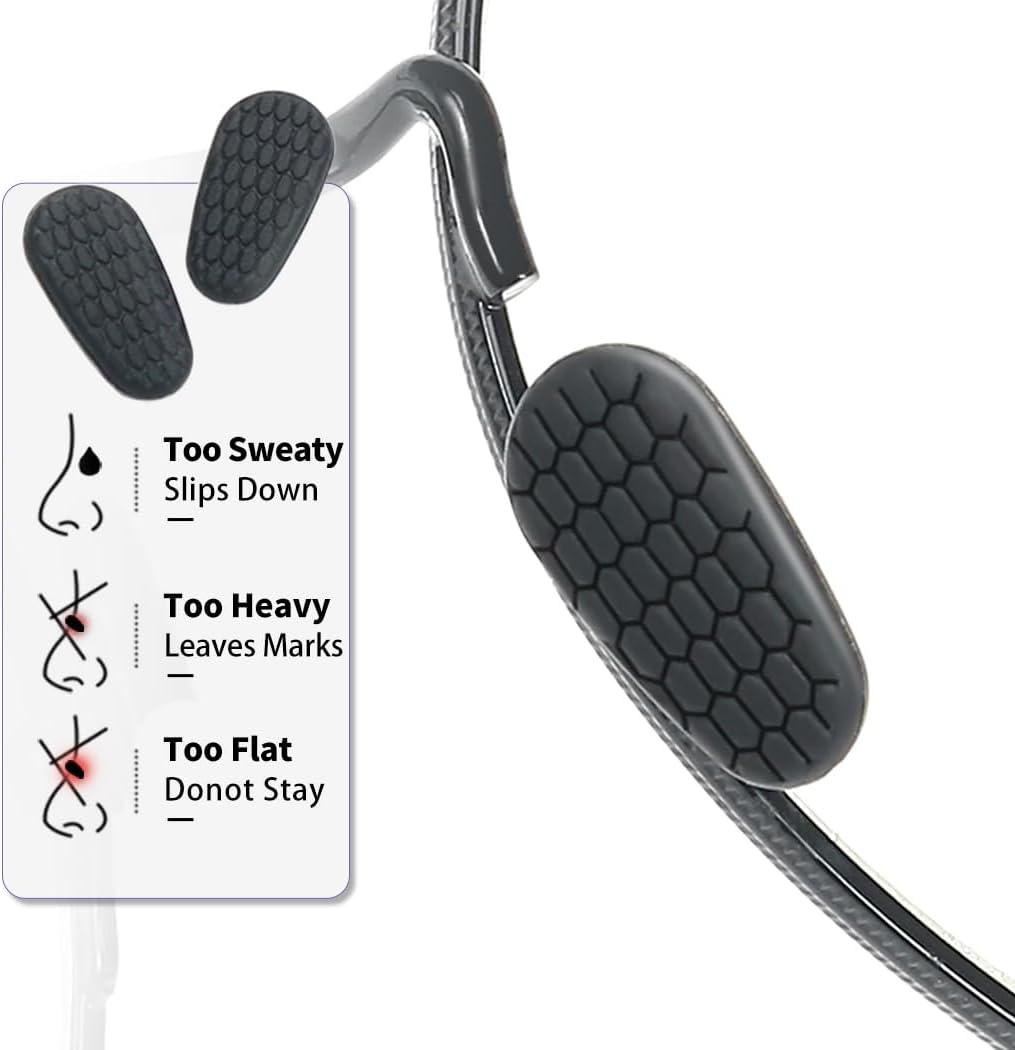 Premium Anti-Slip Nostril Pads for Glasses: Made with high-quality silicone and hexagon grip texture to forestall slipping, even with sweat or oily pores and skin. 30% extra friction than easy nostril pads