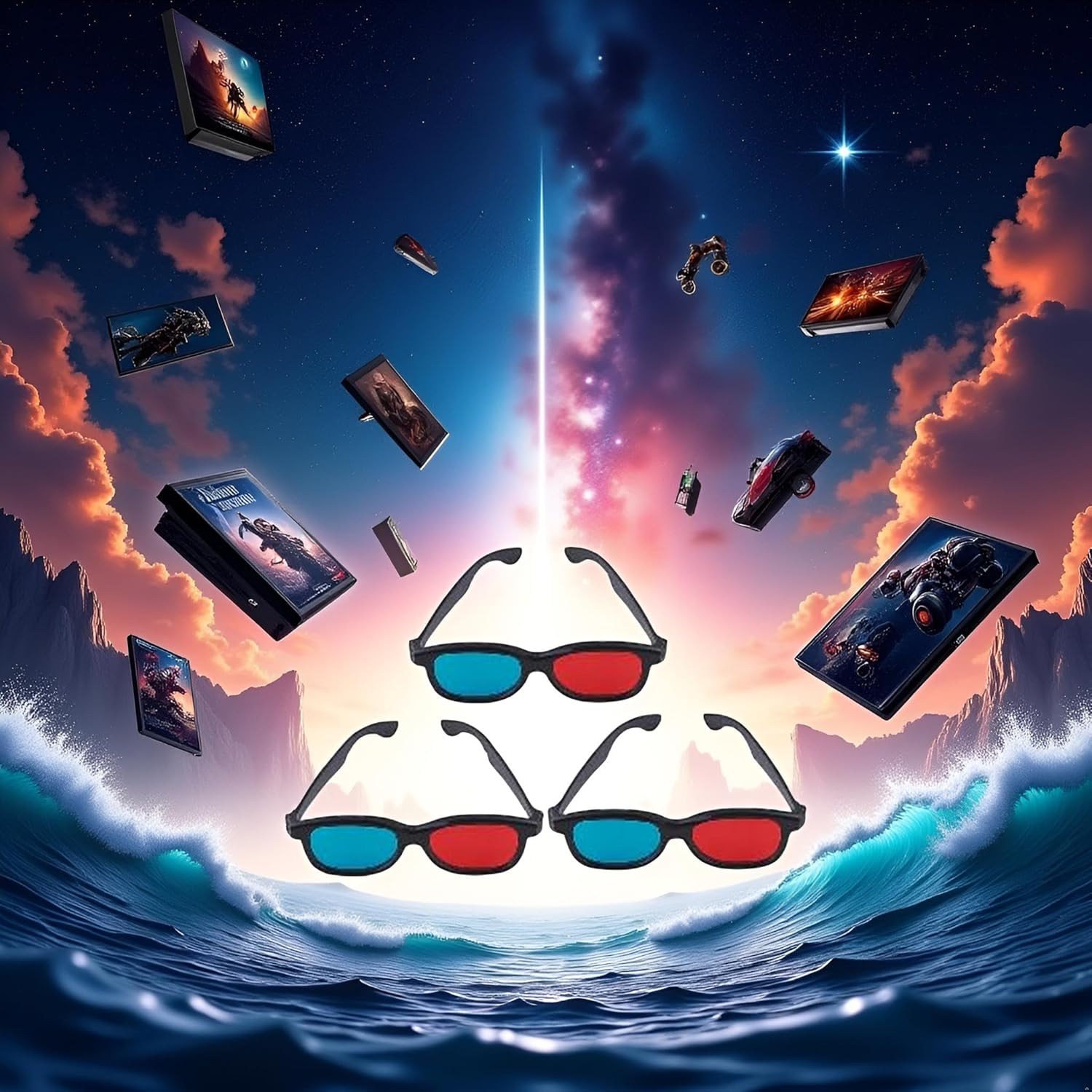 3Pcs Red and Blue 3D Glasses Universal TV Movie Dimensional Video Frame 3D Glasses DVD Game Glass 3D Style Glasses for 3D Movies Games, 3D Viewing Glasses, Televisions and Video, Decorations
