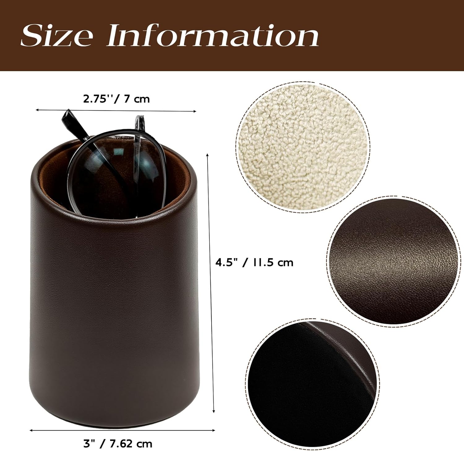 Sturdy PU Leather Construction: Premium leather-look surface with soft felt lining; non-slip base prevents tipping to protect glasses from falls; 2 black and 2 brown eyeglass holders