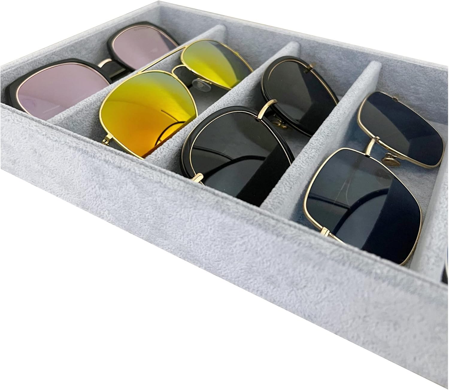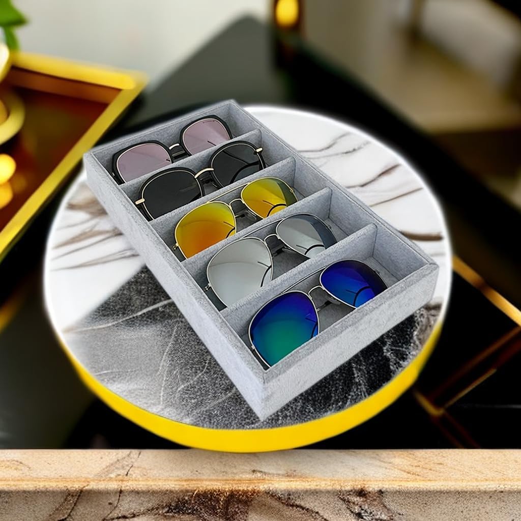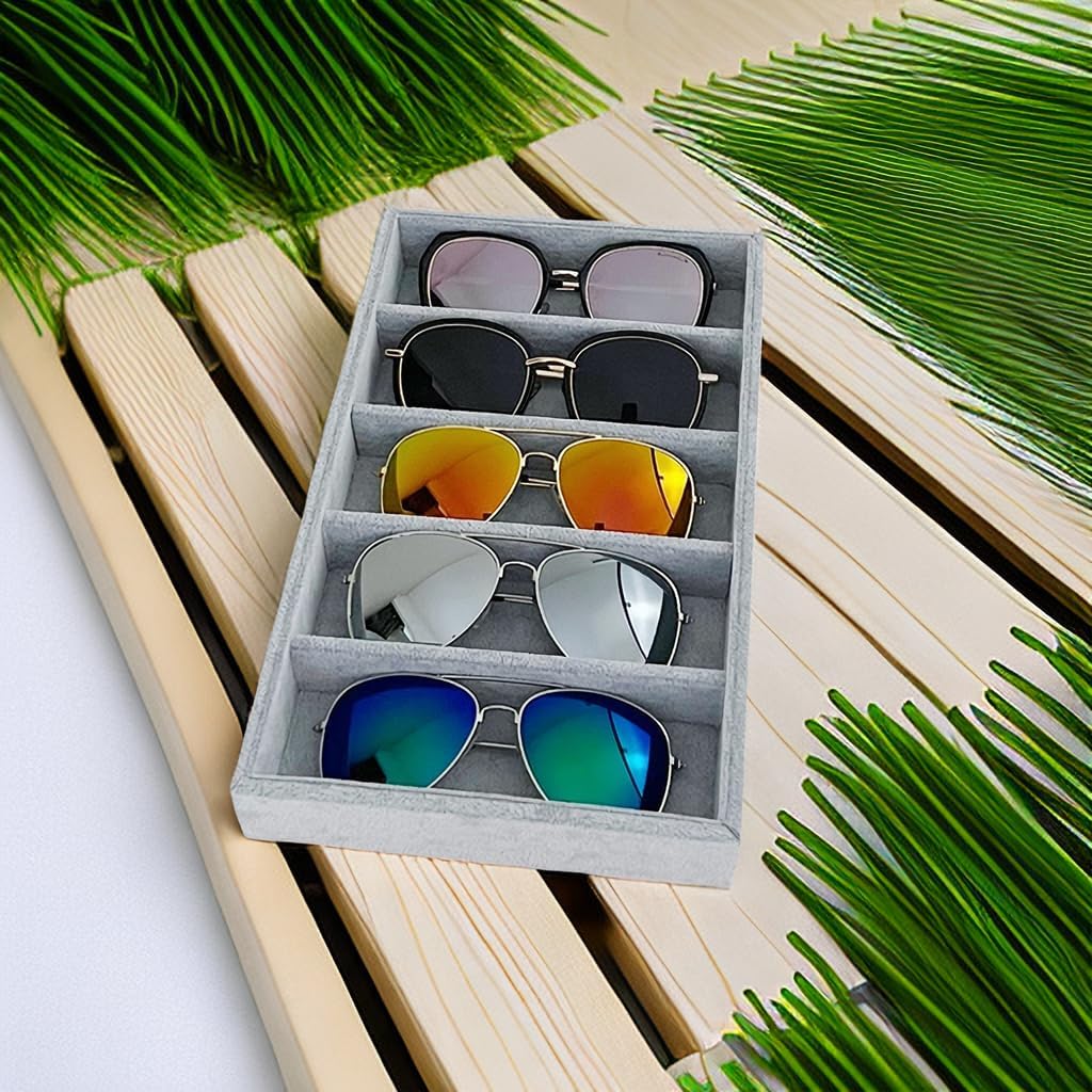 5-Slot Luxurious Gray Velvet Premium Grade Drawer Divider Eyewear Storage Sunglasses Jewelry Tray Organizer