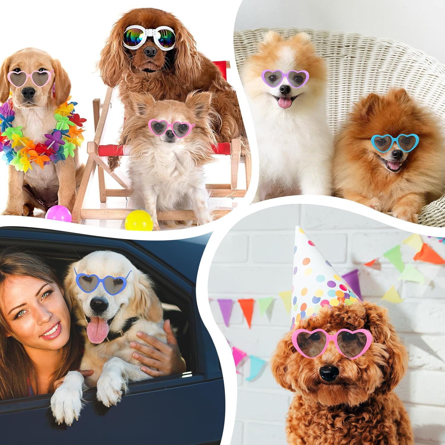 Vibrant Color Variety for Stylish Pets: comes in 6 eye-catching colors pet heart sunglasses (rose red, pink, white, blue, light blue, and light purple), offering endless options to match your pet’s wardrobe; Whether it’s for a festive occasion, a casual walk in the park, or a themed photoshoot, these sunglasses make your furry friend the center of attention