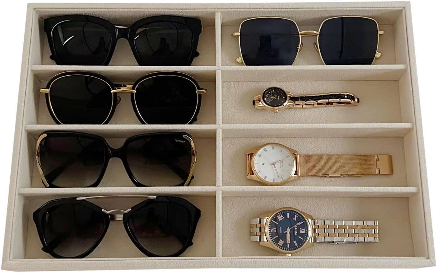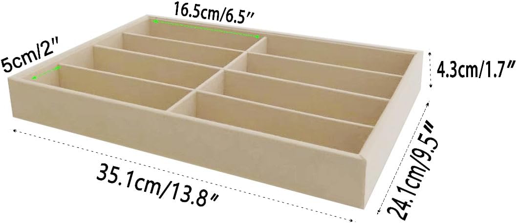 8 Slot Large Light Beige Premium Quality Velvet Sunglasses Eyewear Glasses Watch Box Tray Stackable Practical Trade Show Home Use Jewelry Display Organizer Drawer Divider Insert