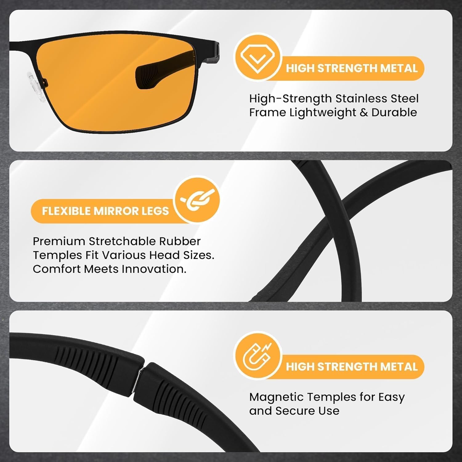 Sure, they match nearly all head styles and sizes. The temple arms are absolutely adjustable and may lengthen as much as 24cm (about 9.45 inches). The magnetic temple ideas hold the glasses securely and comfortably in place, stopping slipping like common glasses.