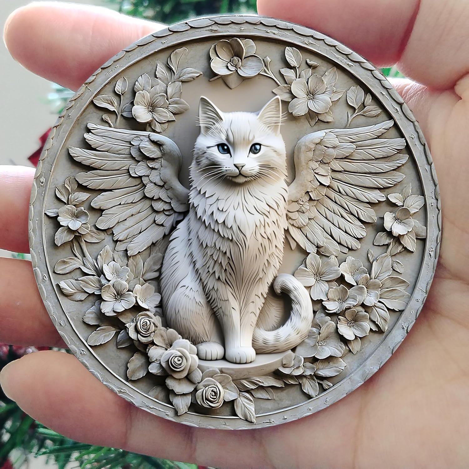 Angel Wing Cat Memorial Christmas Tree Ornament,Prismatic Glass, 3D Floral Design, Holiday Decoration
