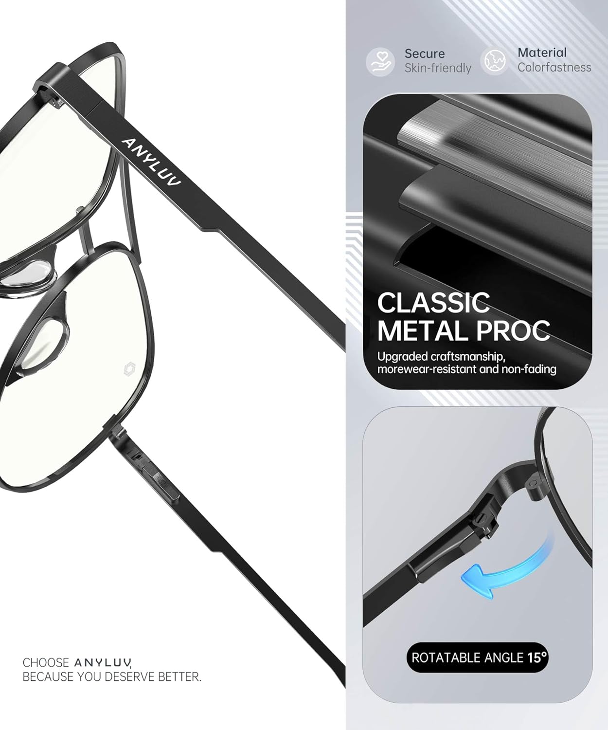 ANYLUV Blue Light Blocking Glasses Men, Pilot Style Computer Gaming Glasses Lightweight Metal Frame & Comfortable Nose Pad
