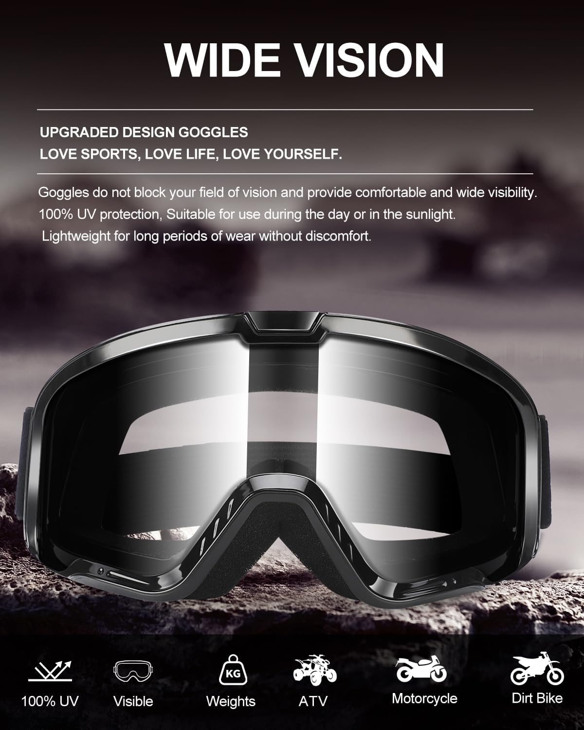 Goggles Headband: The goggles headband can adjustable to 50cm, fabricated from pure cotton, excessive friction and doesn’t fall off.