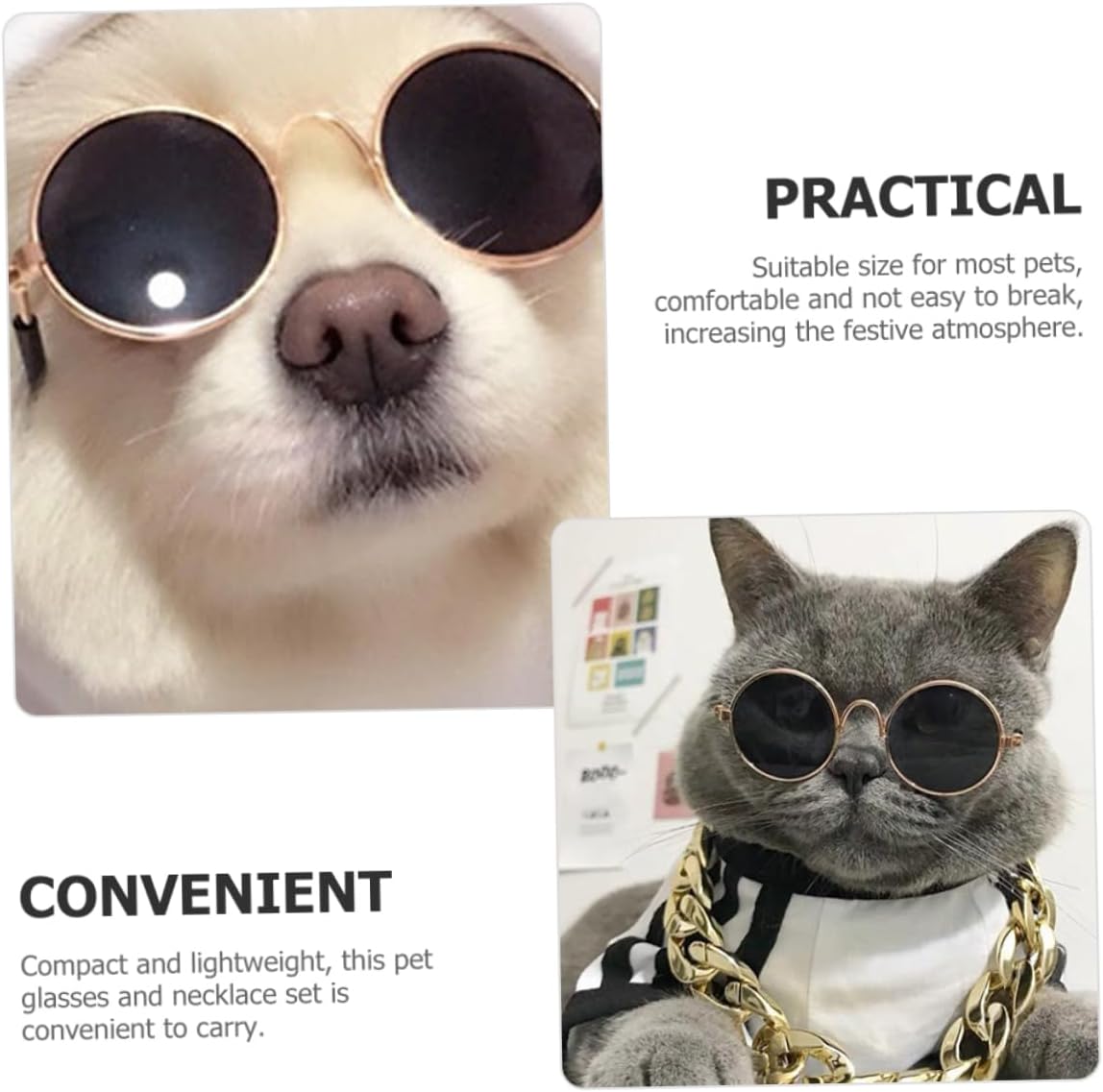 Necklace for Cats This pair of pet glasses and necklace set is manufactured with for sturdy and comfy use.Pet Glasses The good design can’t solely make your pets seems cool and extra fashionable, however shield them.Ornamental Cat Necklace Foldable design, handy storage doesn’t occupy area