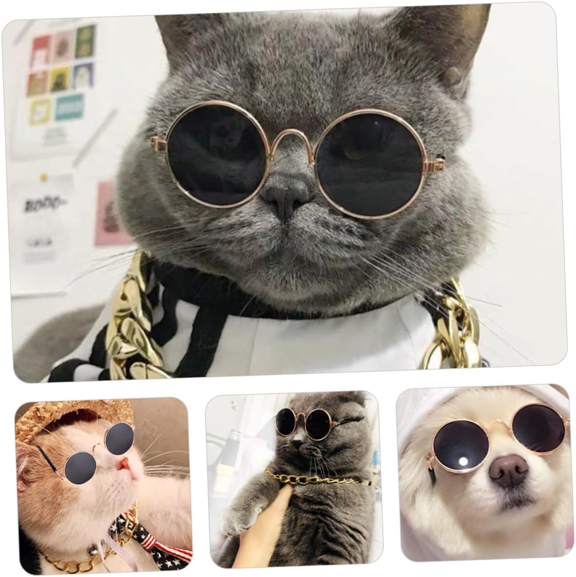 -This pair of cat sun shades and necklaces makes use of retro parts to make your pet look cute and trendy for photograph shoots Canine Sun shades.