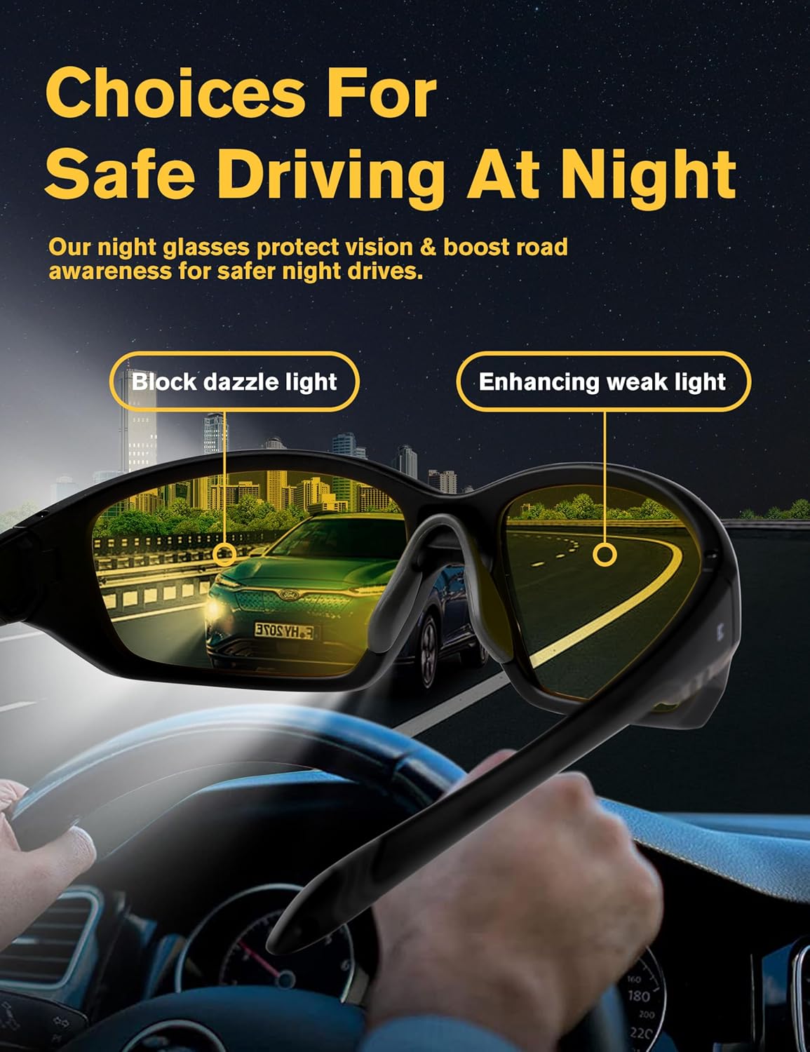 BIRCEN Night Vision Glasses for Driving: Running Cycling Sport Night Anti Glare Yellow Glasses for Men Women