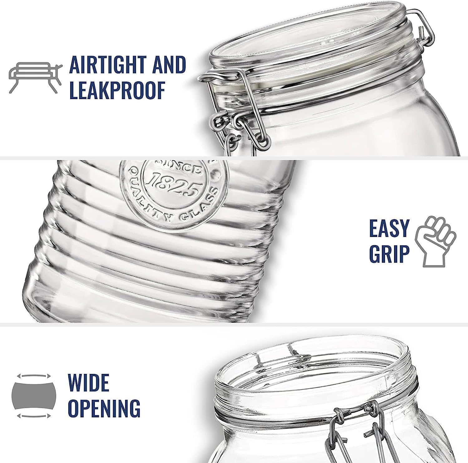 Hermetic Swing Prime Closure: Every jar features a airtight seal with a rubber gasket that locks in freshness, making it ideally suited for storing pasta, rice, espresso, legumes, sugar, and salt.