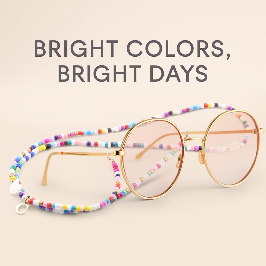 Colorful Initial Beaded Sunglasses Chain Holder with Trendy Lanyard Eyeglasses Chain Reading Glasses Lanyards