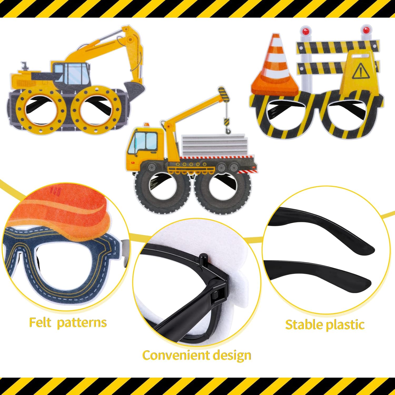 Construction Party Supplies 12PCS Construction Party Felt Glasses with Tractor Excavator Dump Truck Plastic Construction Toys Gift for Kids Toddlers Construction Birthday Party Decor Supplies