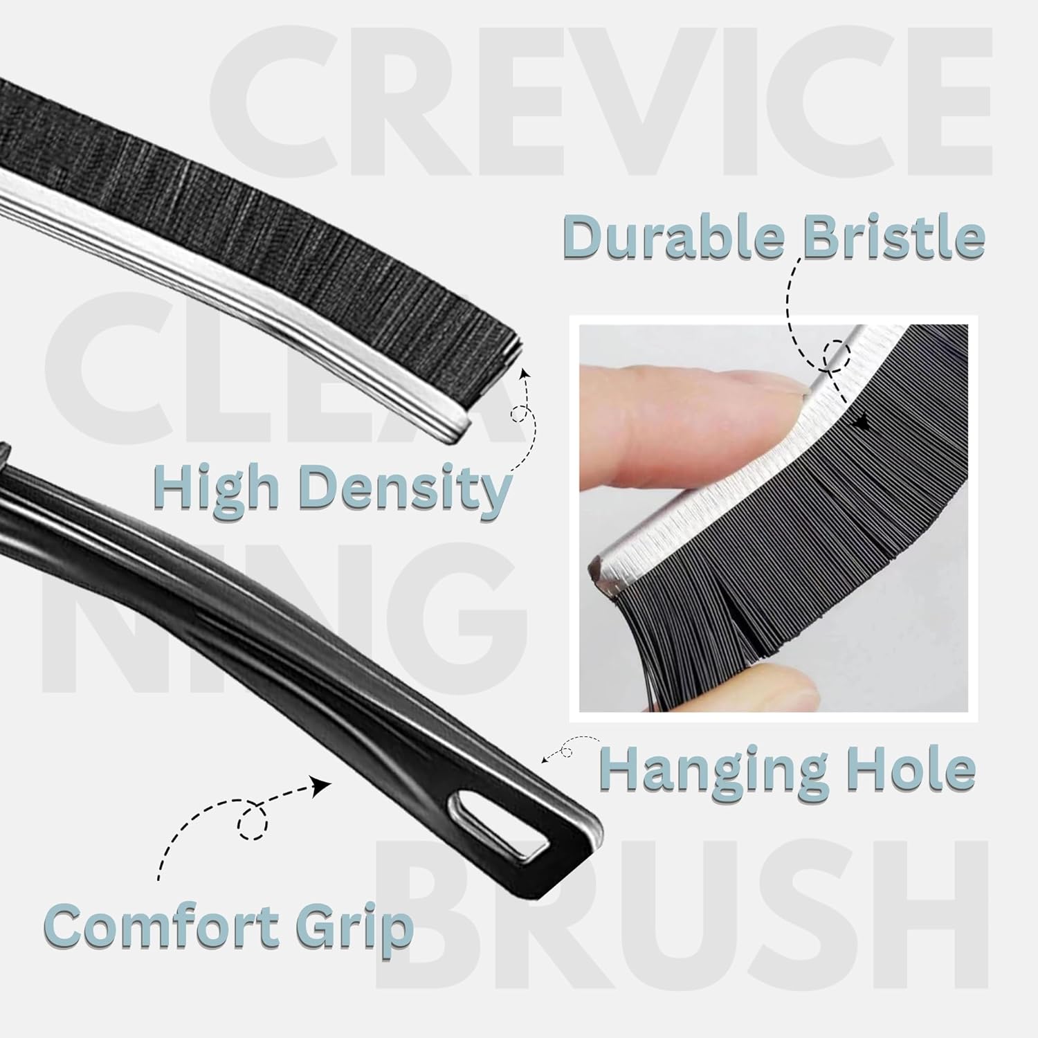 CrafTreat Hard Bristle Crevice Cleaning Brush – 6 Pack (Black) – Gap Scrub Brushes for Kitchen, Bathroom, Window Tracks, Grout, Car & Tight Spaces – Household Cleaning Tool