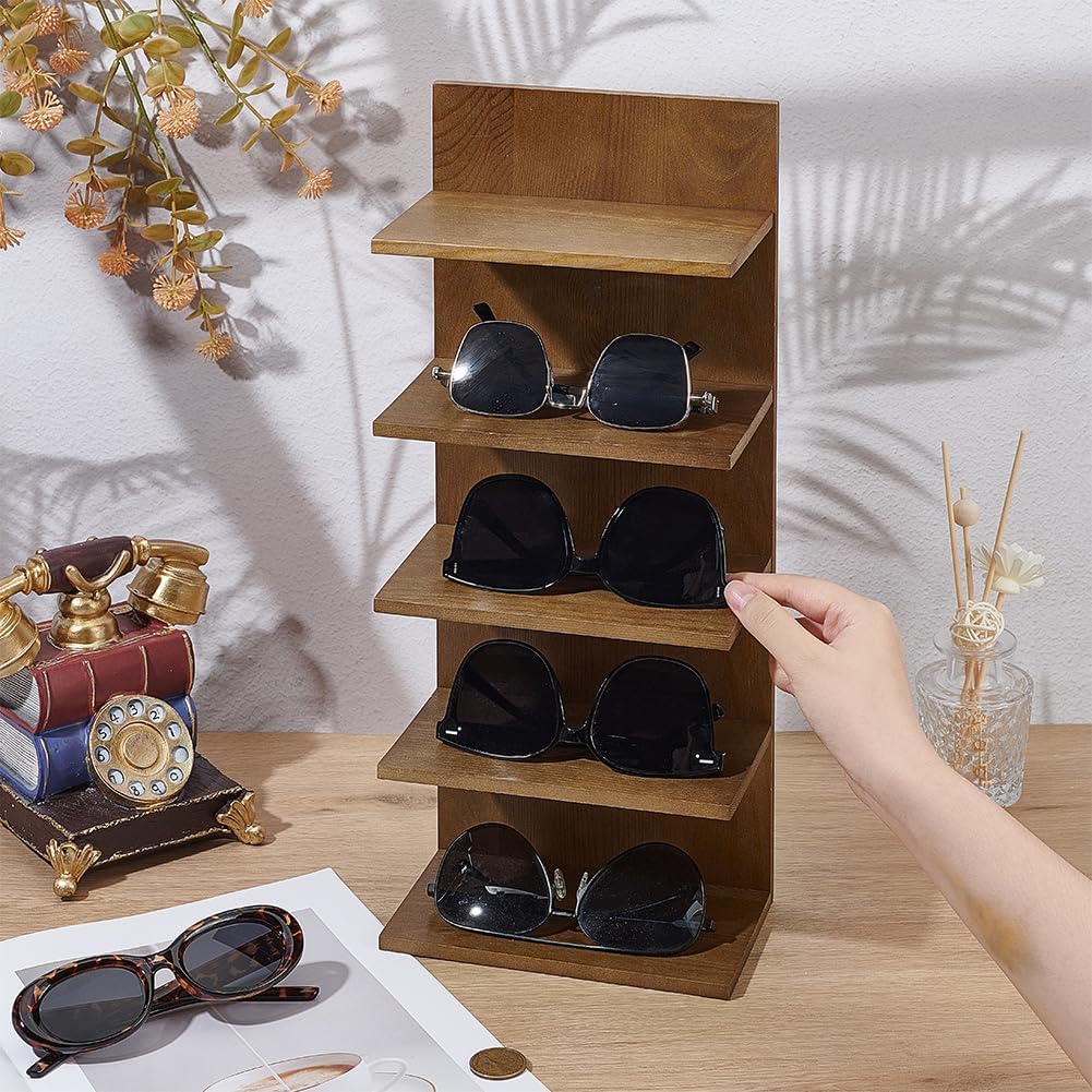 CUTHOLLOW 5 Tier Solid Wood Sunglasses Holder Organizer, Simple Retro Eyeglass Holder Rack Wall Mount, Sunglass Storage Glasses Stand of Eyewear Display for Nightstand Table Desk Countertop Dresser