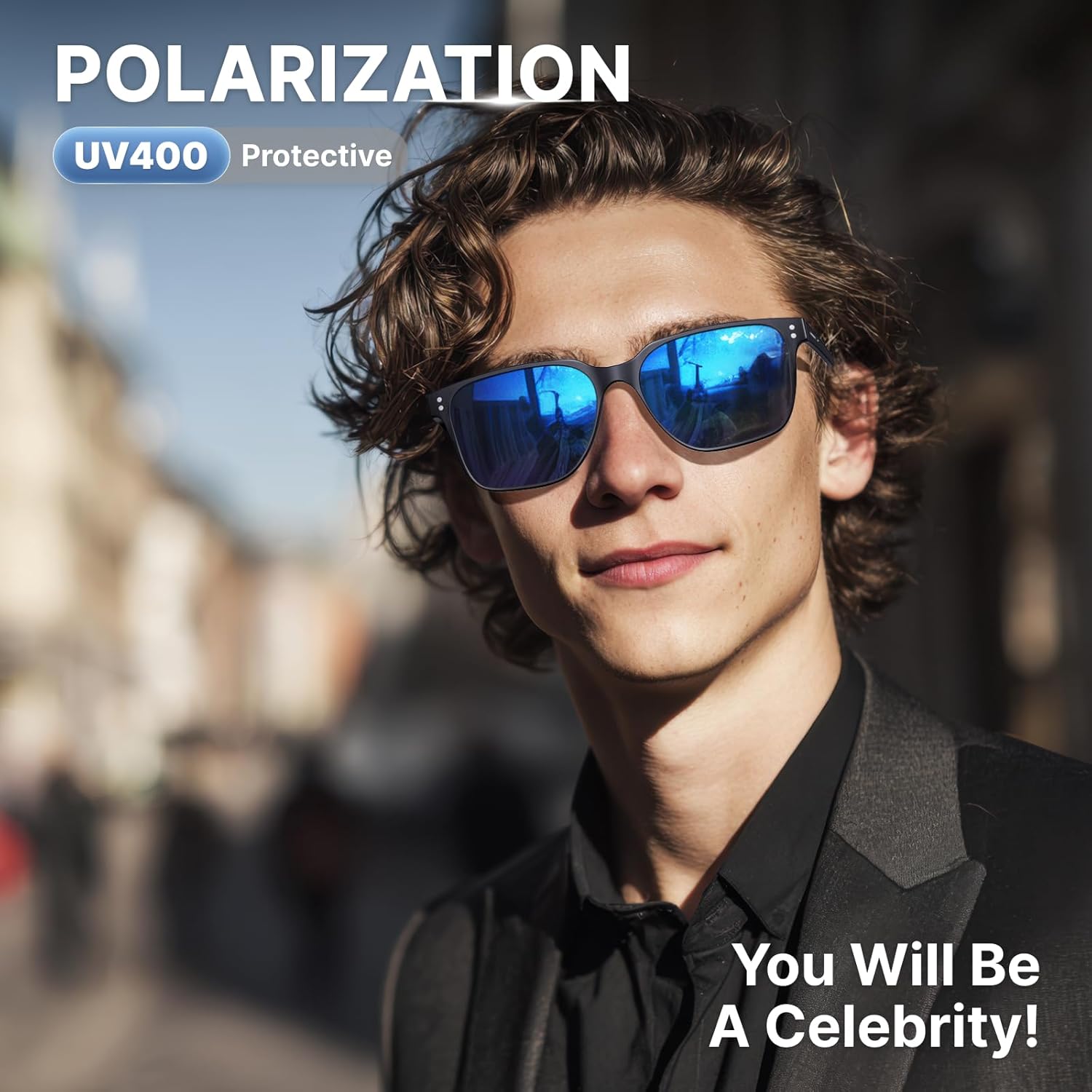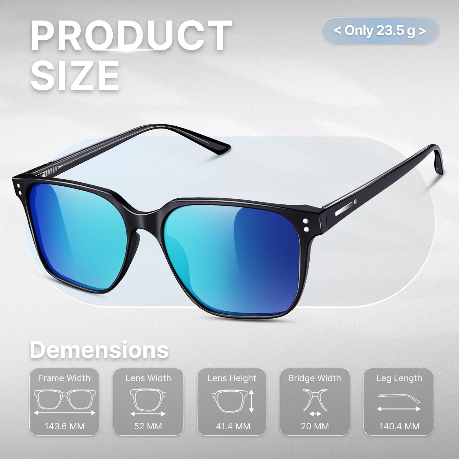 DADA-PRO Polarized Sunglasses Men Women Black Retro Square Mirrored Sun Glasses for Driving Fishing Golf UV Protection Shades