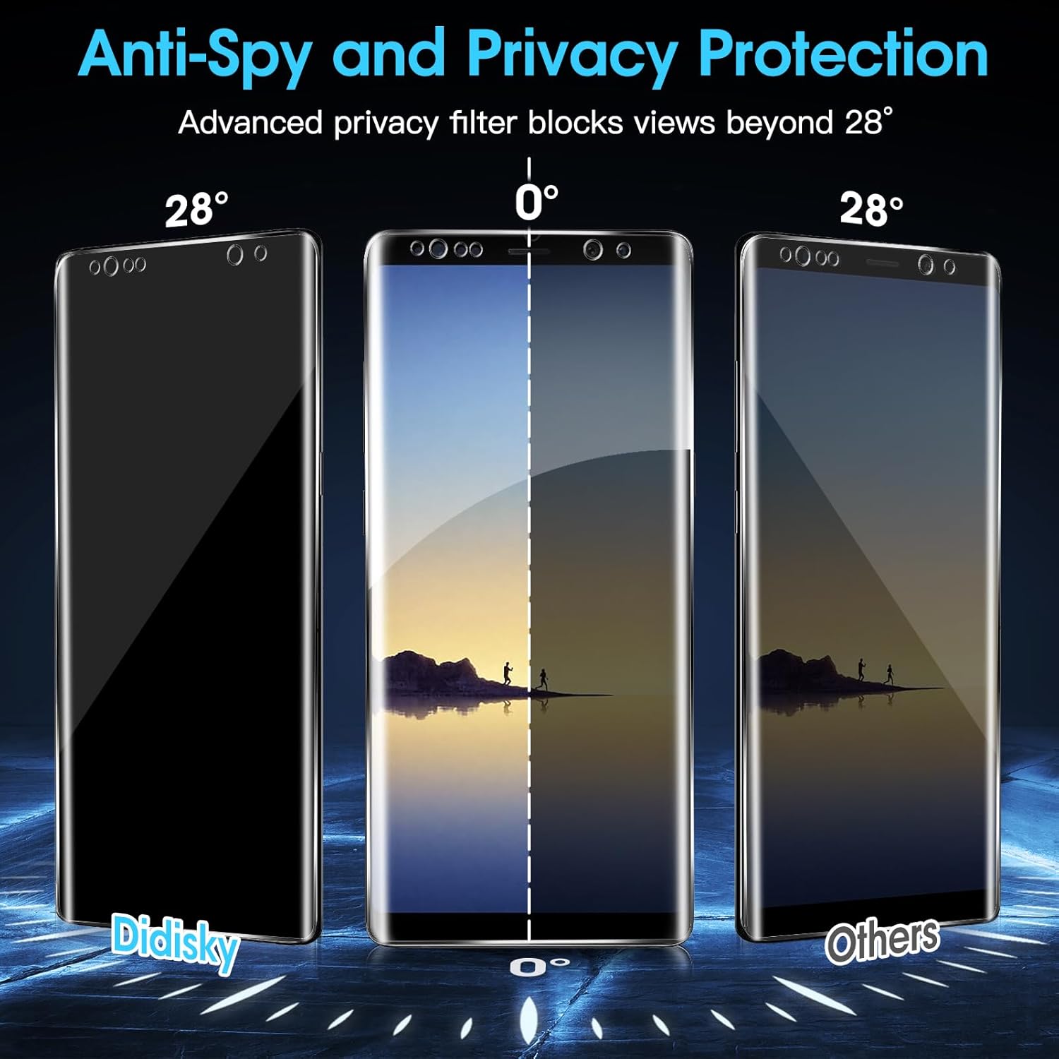 Didisky For Samsung Galaxy Note 8 Privacy Screen Protector 2 Pack Tempered Glass, 3D Curved Full Coverage, Anti-Spy, Anti Scratch, Bubble Free, Easy to Install,9H
