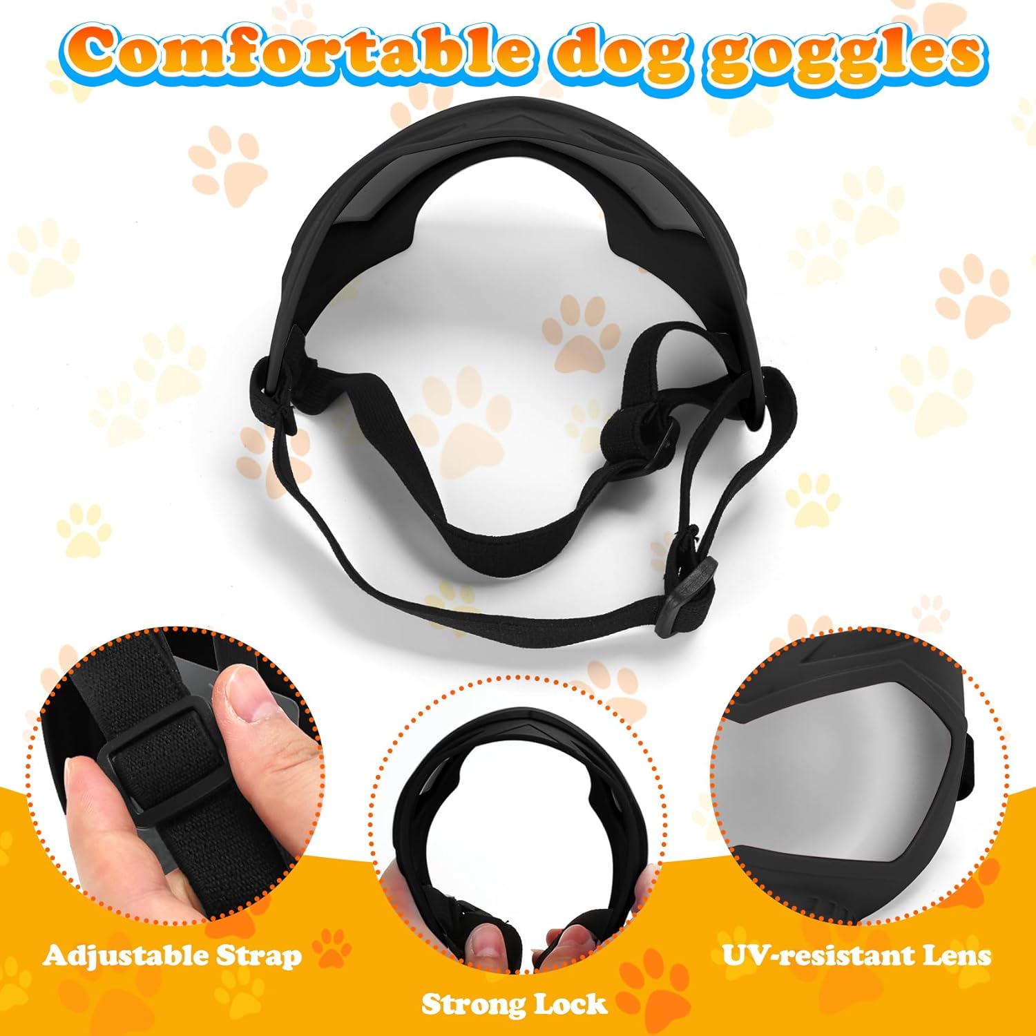 Dog Goggles, UV Protection, Windproof, Dustproof, Anti-Fog Dog Sunglasses for Large & Medium Dogs, Lightweight TPE Frame with Adjustable Strap, Stylish Outdoor Protection (Black)