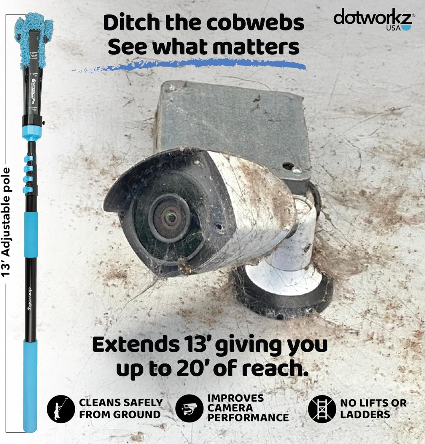 Hold your safety cameras clear and dependable year-round with the Dotworkz Compact 13′ Safety Digital camera Cleansing Device. Engineered and Constructed within the USA for skilled installers, facility groups, and DIY upkeep crews. Designed for all Mini dome, PTZ, Turret, LPR and Bullet fashion cameras, this all-in-one device delivers streak-free, scratch-free efficiency—with out the necessity for expensive lifts or ladders. The patented 360° versatile 4-mode shape-changing cleansing head adapts to any floor: curved domes, flat lenses, and bubble housings. Features a super-duty mode for closely fouled lenses. The mitt system is designed to tug particles and filth away from washable, reusable, and replaceable, produced from anti-static microfiber that safely cleans delicate optics in only one move. (Further mitts offered individually.) This whole equipment consists of an 8oz Professional-Clear Lens Answer is formulated to securely take away filth, salt, grime, water spots, and bug webs—for sustaining clear, streak free imaging with out chemically damaging plastic lenses or housings. The Dotworkz Compact 13 + Cleansing Device is light-weight, twist-free, and ultra-portable. It saves time, reduces danger, and meets OSHA security requirements.