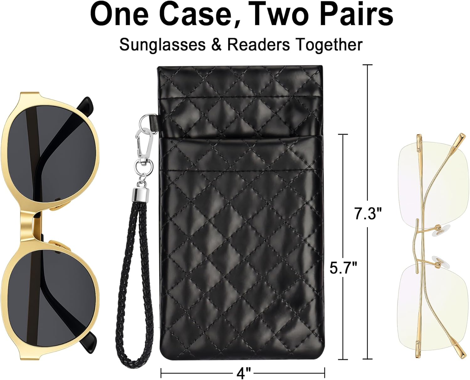 Double Glasses Case Dual Sunglasses Case, Soft Eyeglass Cases for Women Squeeze Top Sunglasses Organizer