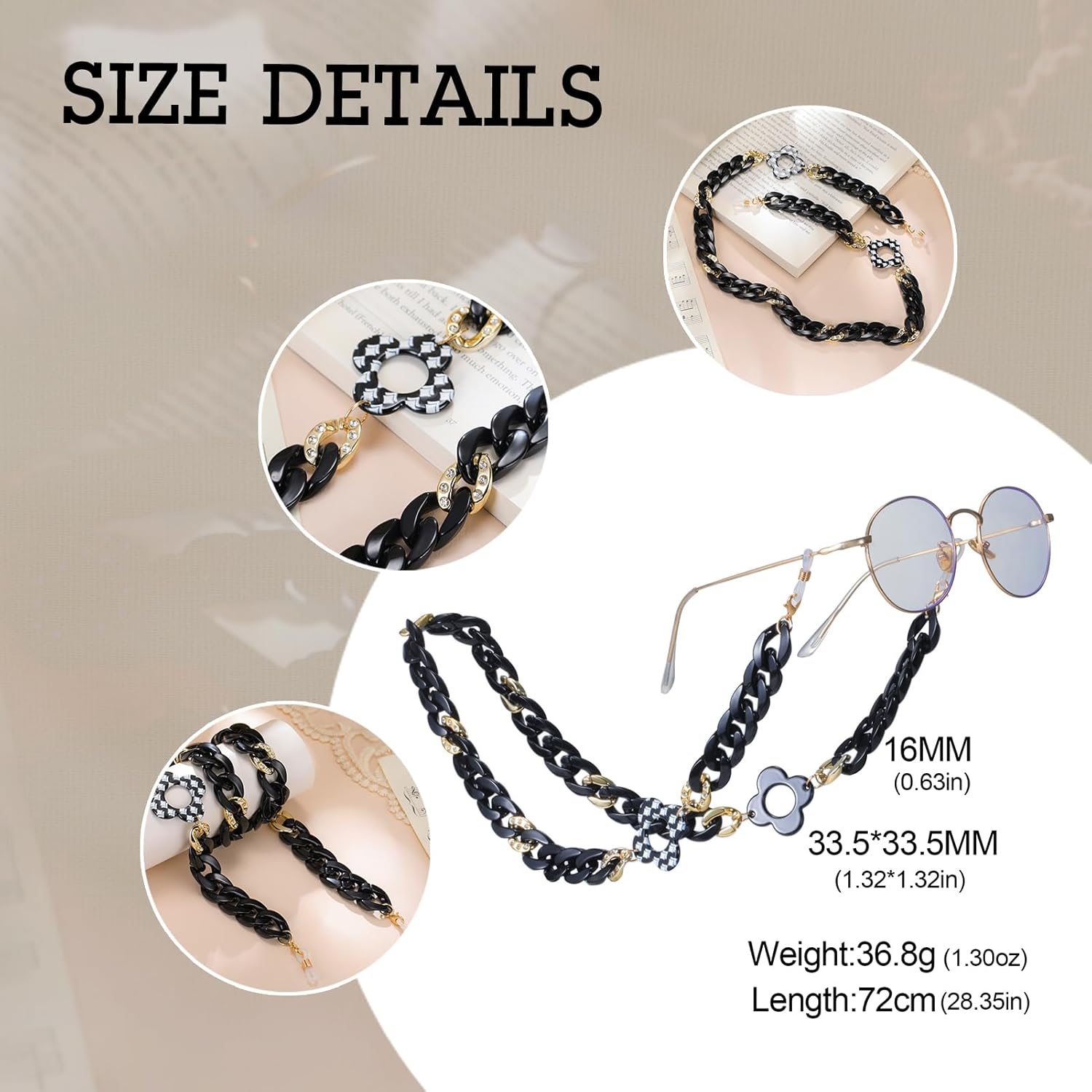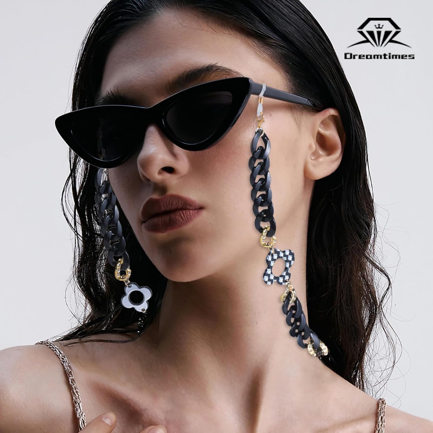 Dreamtimes Eyeglass Chain with Acrylic Stylish Adjustable Black Eyewear Retainer for Women Men Lightweight Glasses Holder