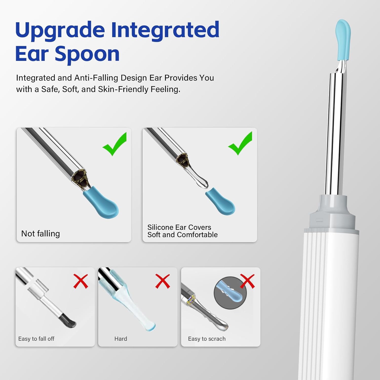 【Built-in ear scoop design】In view of the issue that the ear spoon is straightforward to fall off in the marketplace, we now have optimized and improved, and carefully mixed the digital camera and the ear spoon to attain an built-in design. This design not solely simplifies the set up course of, but additionally significantly improves the protection of use, successfully avoiding the danger of unintentional drop of the ear spoon into the ear. Please notice that this product ought to by no means be used in the course of the charging course of to make sure secure and steady use.