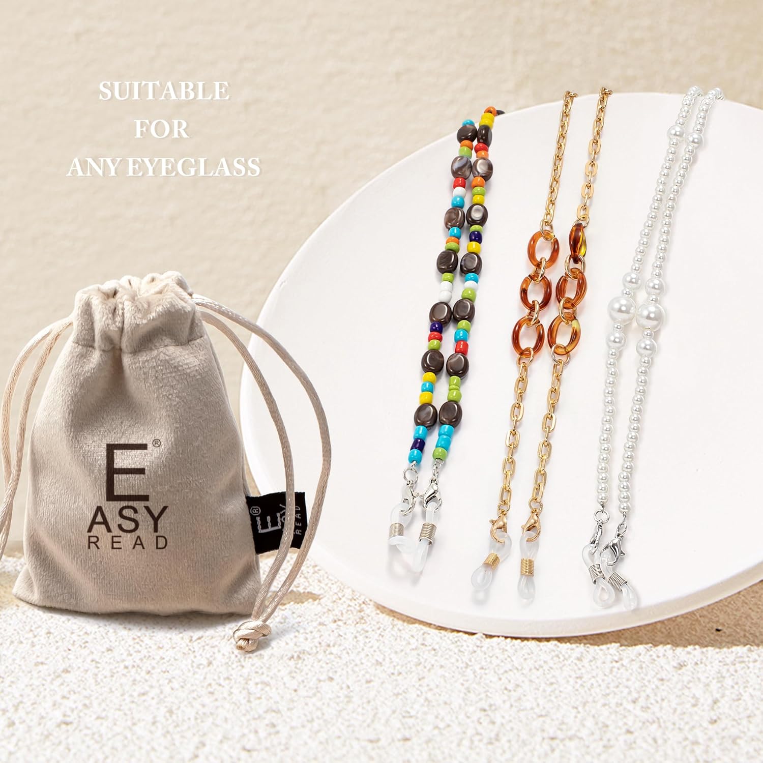 EASY READ Eyeglass Chains for Women,Stylish Eye Glasses Holders Around Neck,Sunglasses Chains Glasses Strap for Women