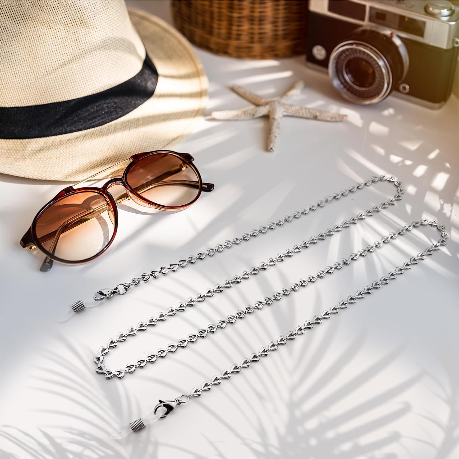 Eyeglass Chain for Women Stylish,Stainless Steel Glasses Strap for Women,Eye Glasses Chain Holders Around Neck (5-Silver)