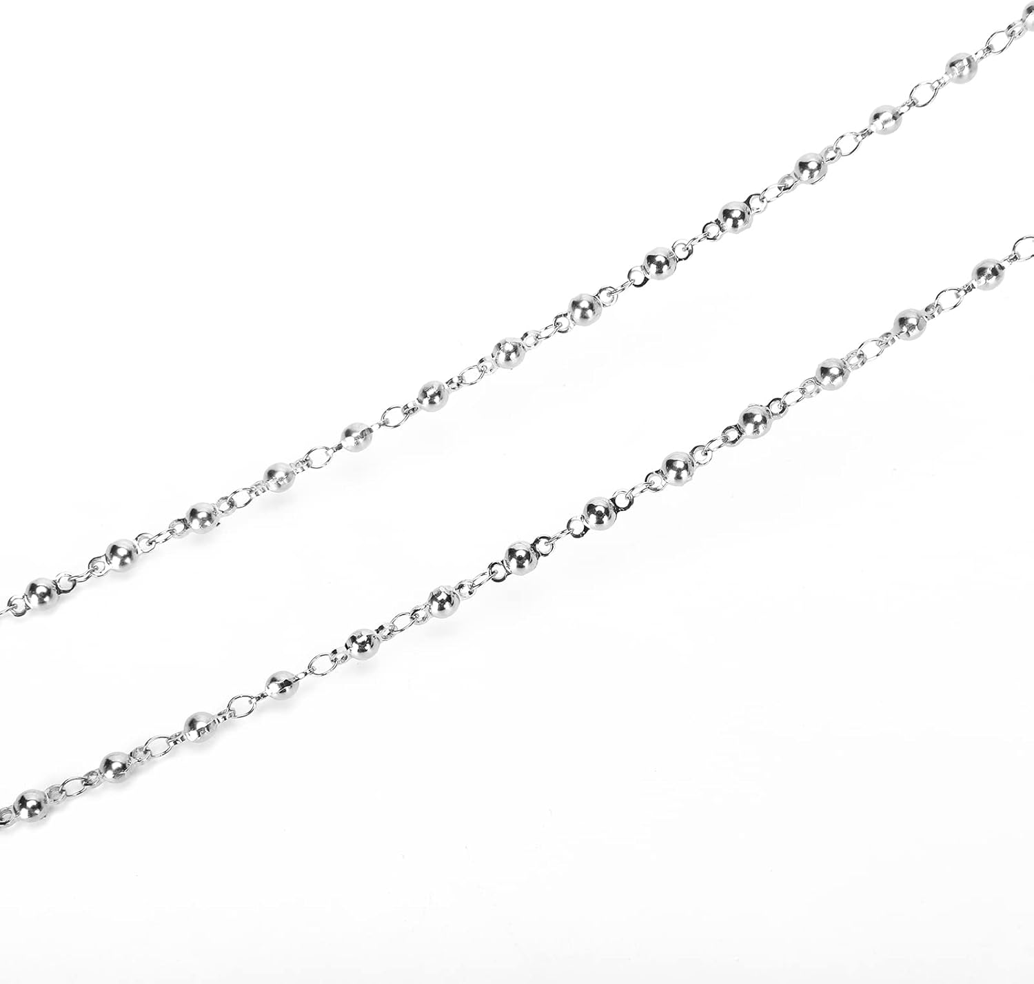 Eyeglass Chain Silver Stainless Steel Handmade Necklace for Reading Glasses Sunglass Beaded Chains for Men Women