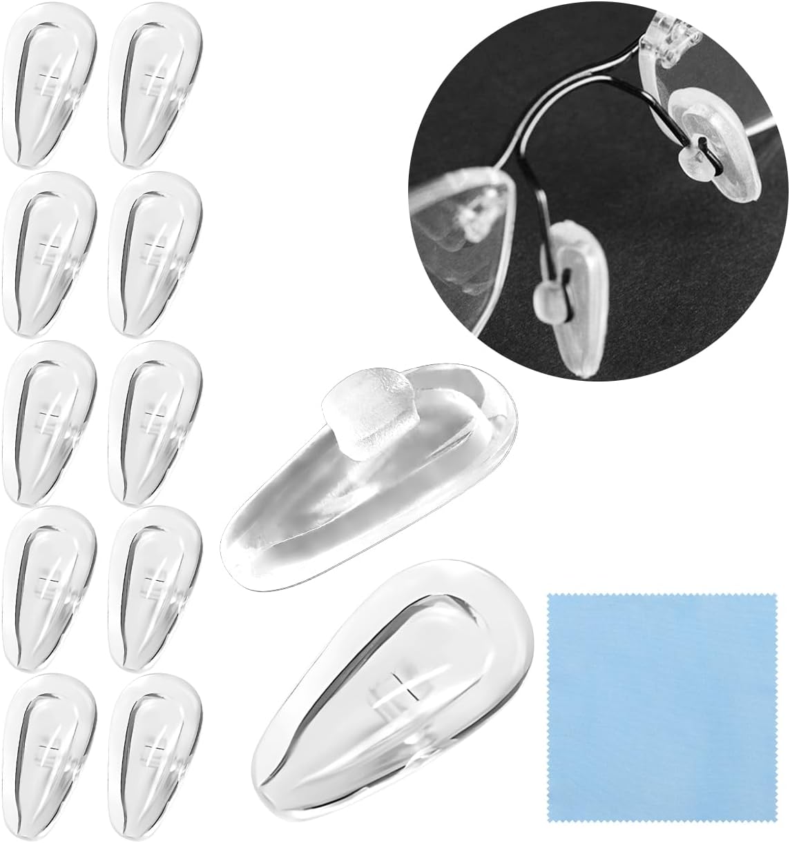 Eyeglasses Nostril Pads, Screw-in Silicone Eyeglass Nostril Pads Restore Instruments Package with 6 Pairs of Silicone Nostril Pads,Screws,Screwdrivers,Tweezer and Cleansing Material for Glasses