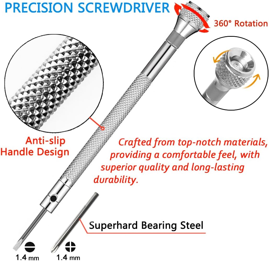 【Pro-Grade Tools, Multi-Job Toughness】This kit includes professional-level watch repair screwdrivers—built to last, with top-tier quality that makes light work of eyeglass fixes, toy repairs, and tiny phone screws. True do-it-all tools for every small-job need.