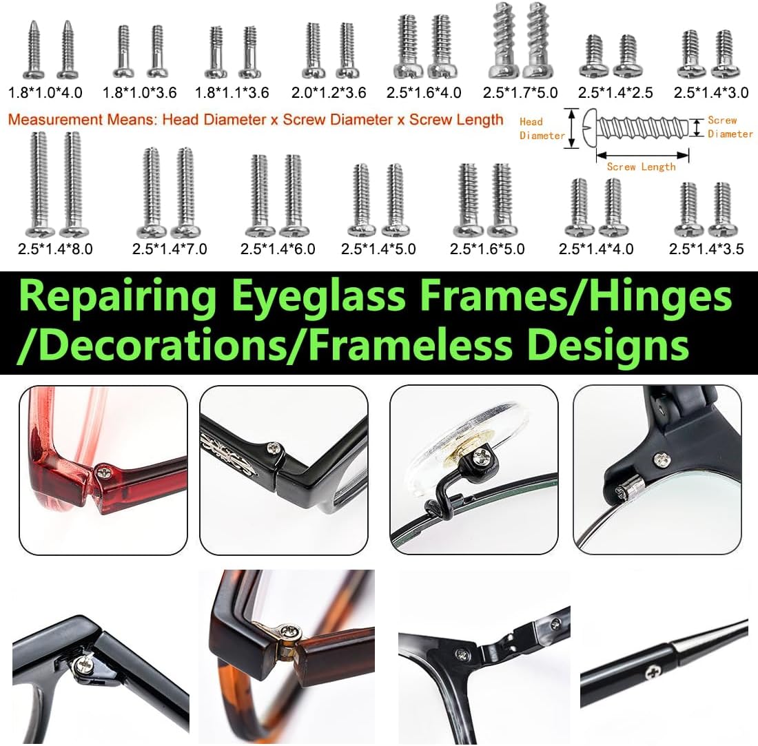 【Nearly Universal Eyewear Fit】With sturdy glasses screwdrivers and multi-sized eyeglass screws, this kit is a one-stop fix for sunglasses (perfect for sunglass repair needs), reading glasses, and 99% of major eyewear brands. No more guessing if tools fit—grab, repair, go!