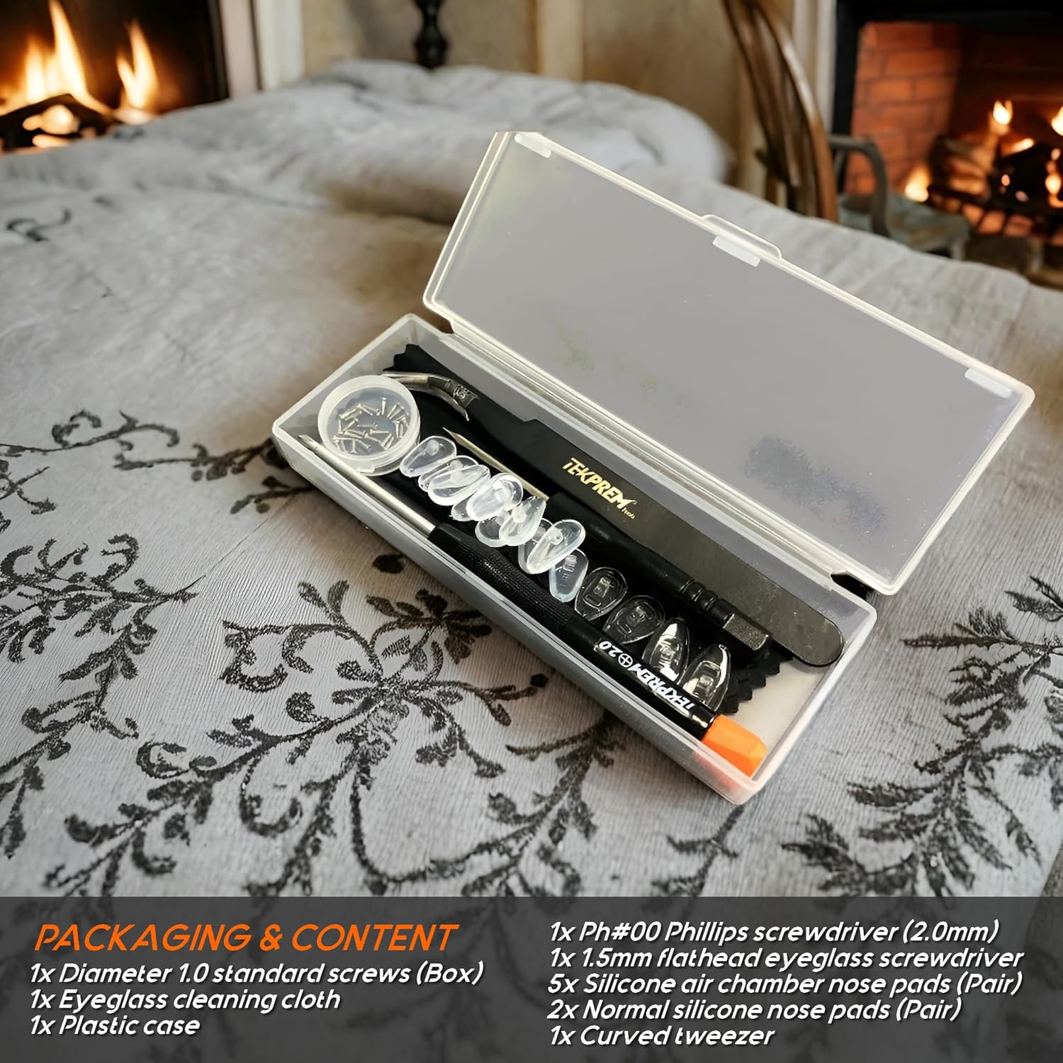 [Premium Tweezer for Pickup]: The high quality curved tweezer is pointed and sharp which will make replacement easy and convenient to pick up these tiny screws and nose pads.