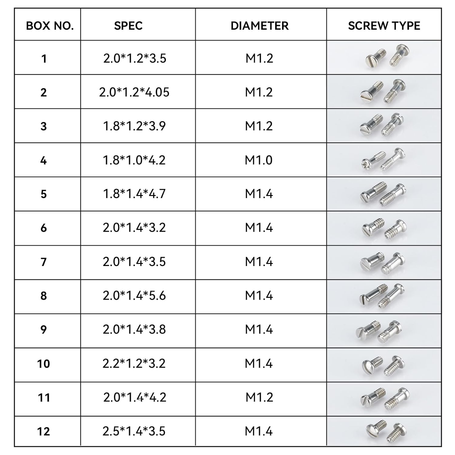 12 kinds of eyeglasses screws can high compatibility, suitable for eyeglasses, sunglasses and Suitable to meet over 95% Famous Brands such as Ray-Ban, Oakley, Persol, etc.. The repair Kit also for watches, clocks, toys and calculators repair and you can also attach it to your key chain for standy applications.