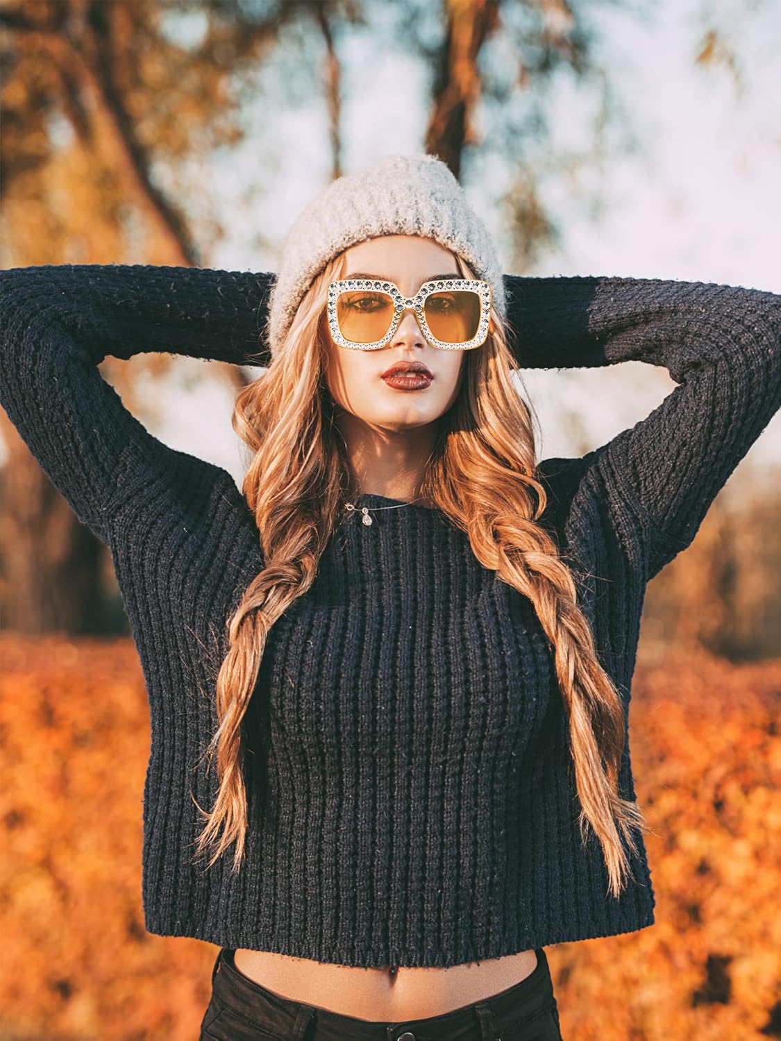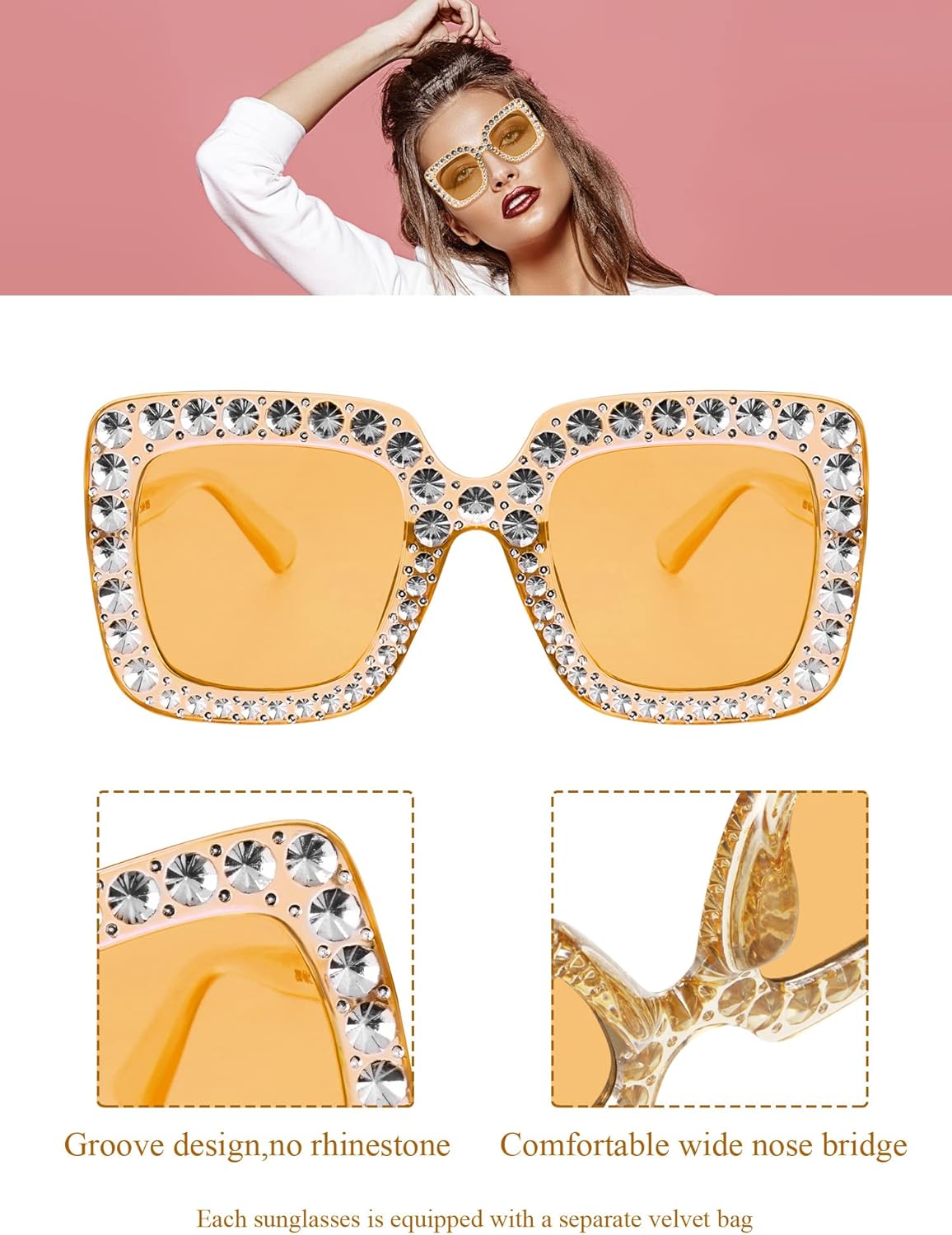 Frienda 1 Pcs Retro Disco Sunglasses Women Rhinestone Bling Glasses Girl Oversize Glitter Sunglasses 70s Disco Accessories