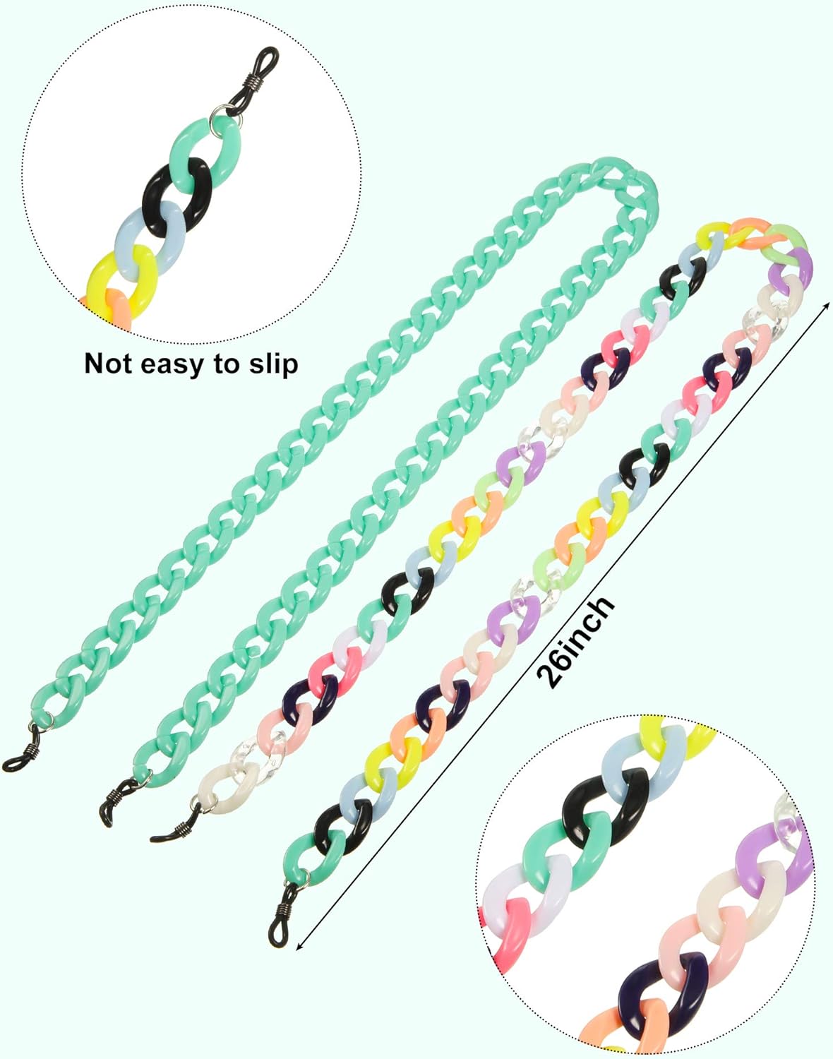 These acrylic glasses chains are designed with adjustable common connectors, which is appropriate for numerous kinds of glasses, reminiscent of studying glasses, sun shades, myopia glasses and so forth, which cannot solely stop unintentional lack of glasses and face protecting, but in addition a gorgeous ornament.