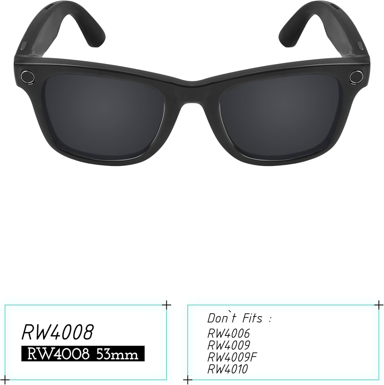 Galvanic Replacement Lenses for Ray-Ban Meta Wayfarer RW4008 & Gen 2 RW4012 53mm Smart Glasses – Transition, Easy to Install