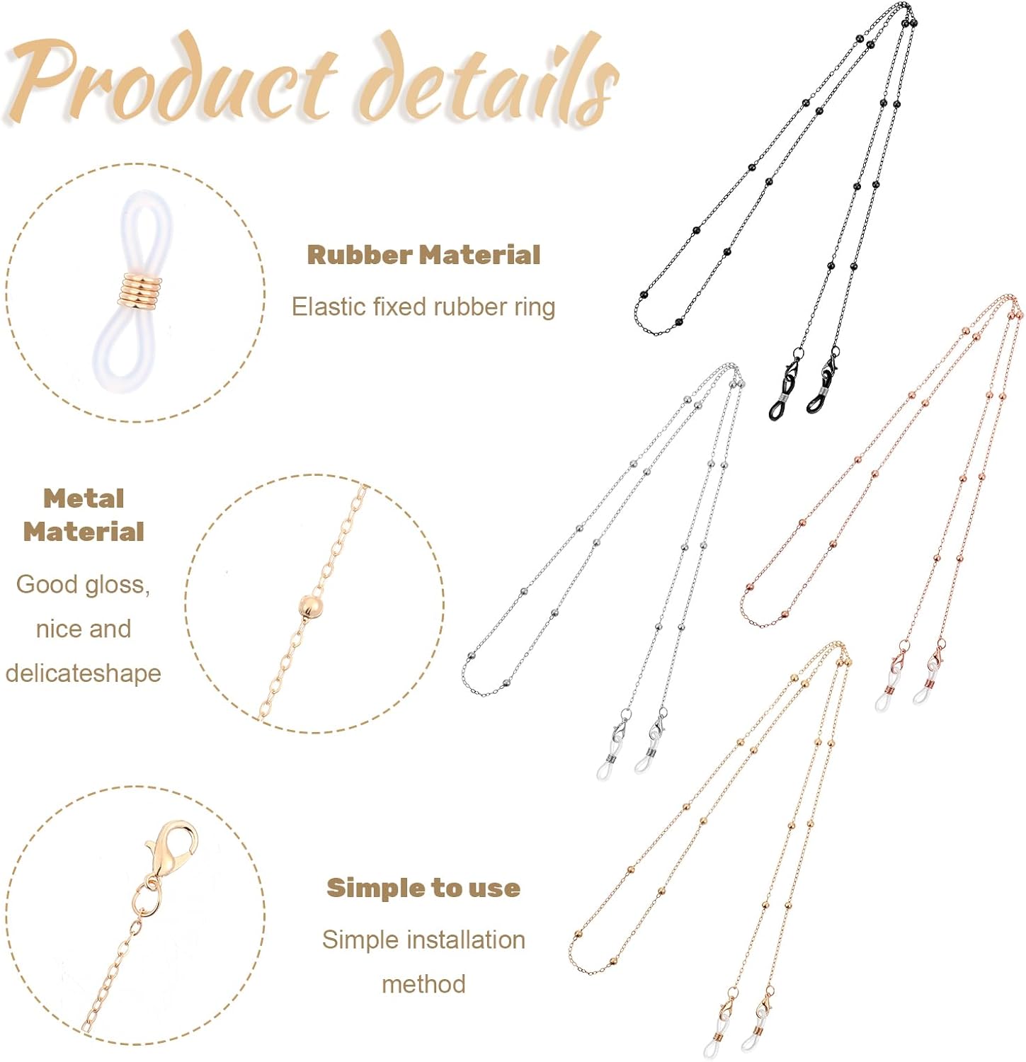 Giantree 8 Pcs Stylish Eyeglasses Chain for Women, Stainless Steel Glasses Chain, Sunglasses Strap Holder Eyewear Chains Reading Lanyard for Women Men