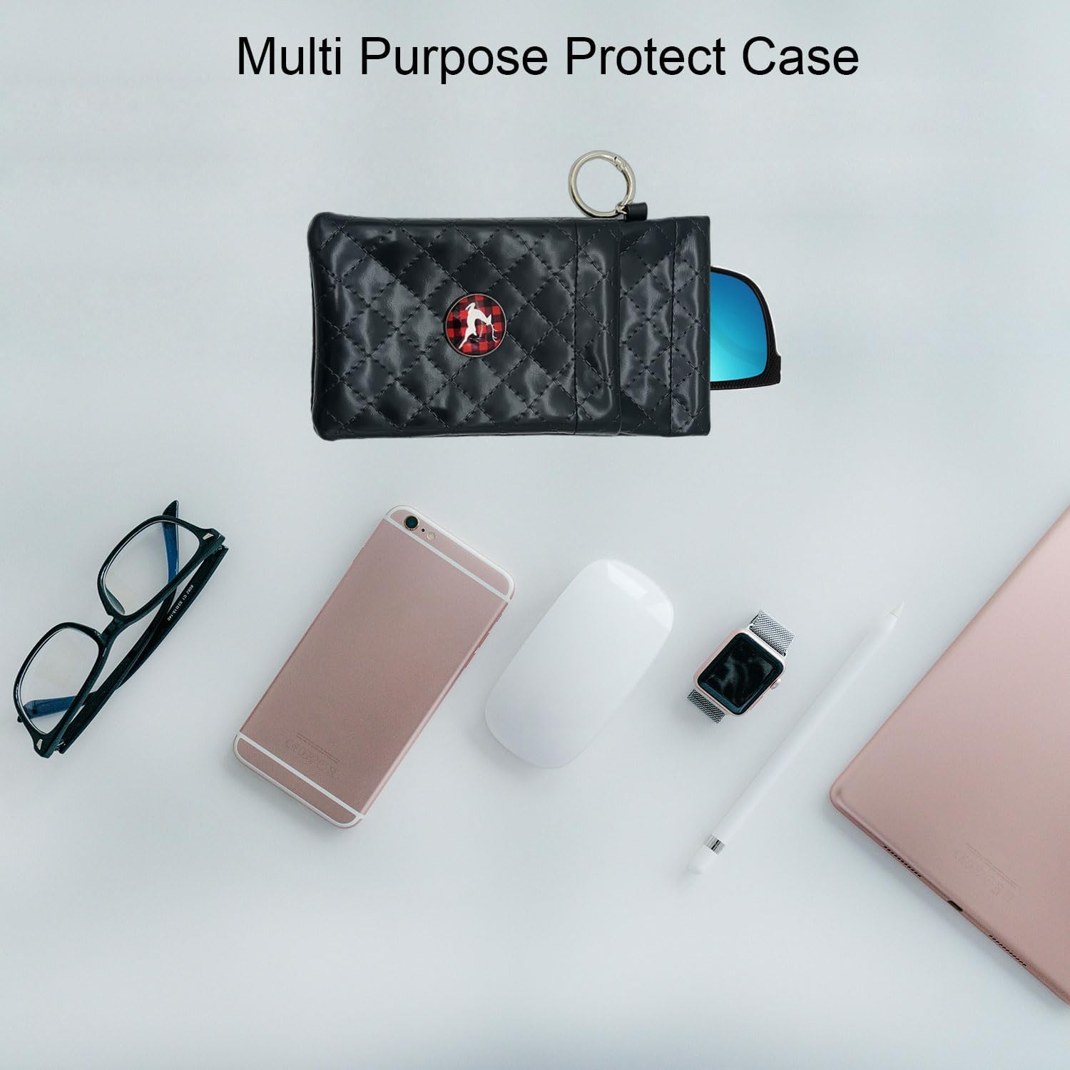 Glasses Case Double Pouch, Large Squeeze Top Sunglasses Case with Buckle,Soft Sunglass Case