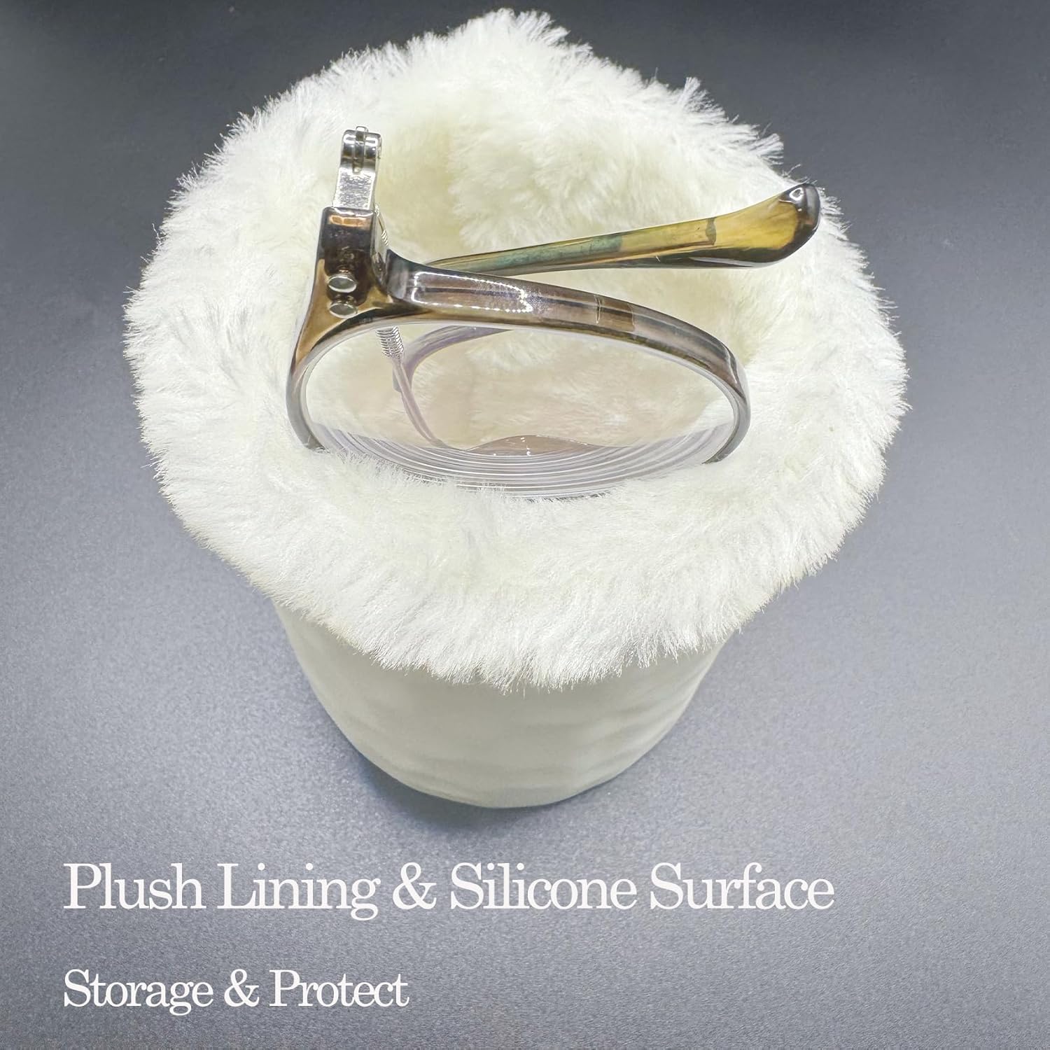 Plush Lined Eyeglasses Holder The fur is delicate and retains glasses from being scratched and the holder could be very sturdy. It is nice to maintain on an finish desk or bedside desk Maintain your nightstand clear and arranged. Retains rim glasses good and comfy in the course of the night time. for my desk and one in the lounge by the TV. Helpful on my nightstand This holder is so useful for conserving my glasses scratch-free and simply findable. It was simple to kind the behavior of merely chucking my specs into this cute canister lined with delicate fur. No extra in search of glasses! fur-lined eyeglass holder Colour:White/Pink Measurement: 3.4″D x 4″H Materials: Silicone & Plush lining Bundle: 1 x plush lined eyeglasses holder stand